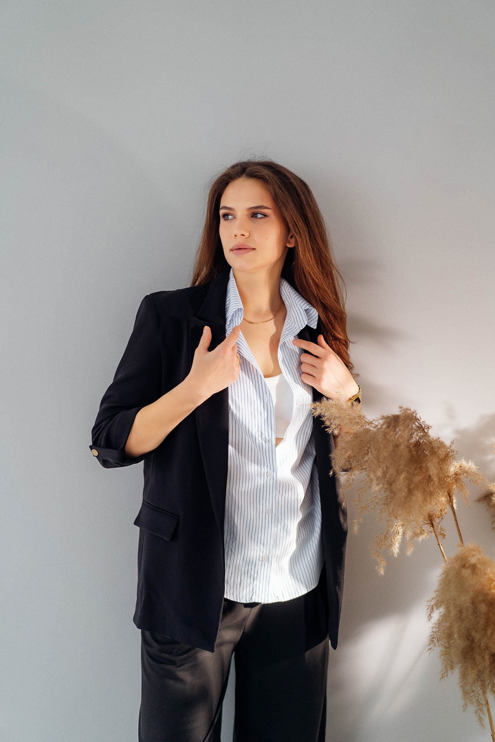 Параметри моделі: обхват грудей 90 см, талія 68 см, стегна 100 см, зріст 176 см. Розмір одягу L