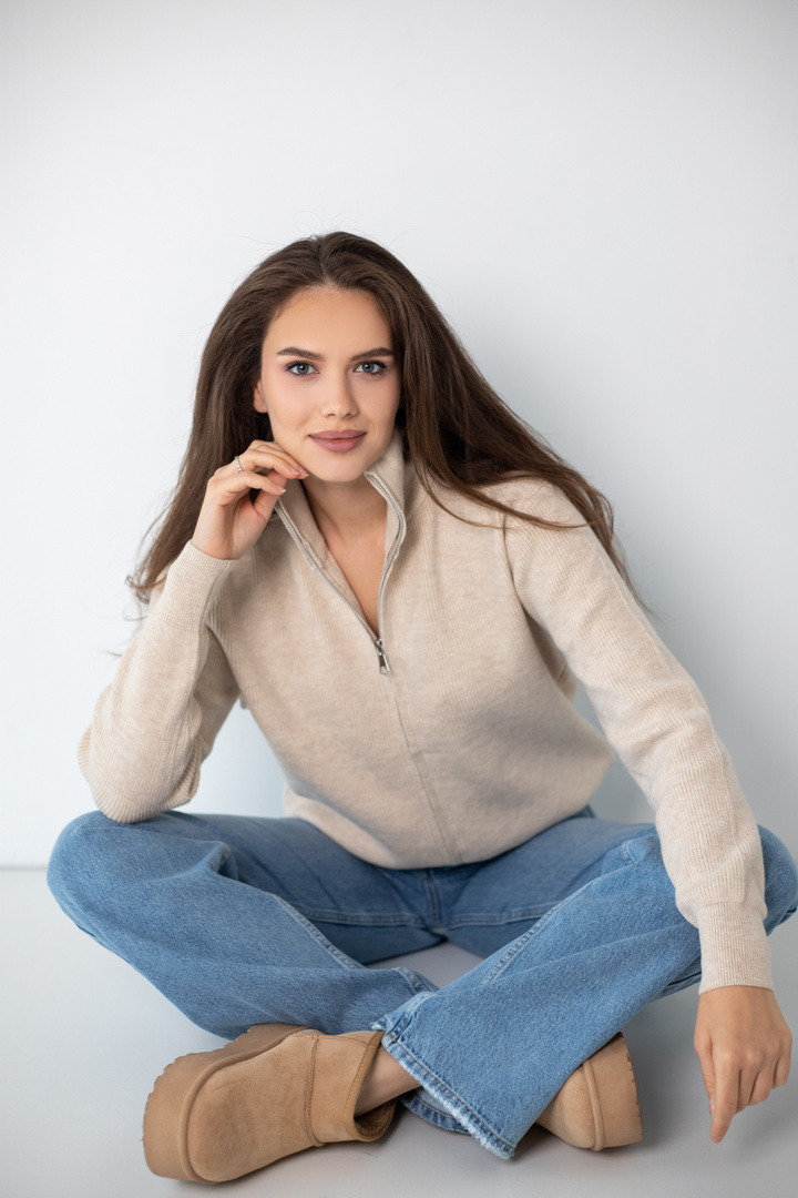 Склад:60% бавовна, 20% кашемір, 10% еластан, 10% ангора.