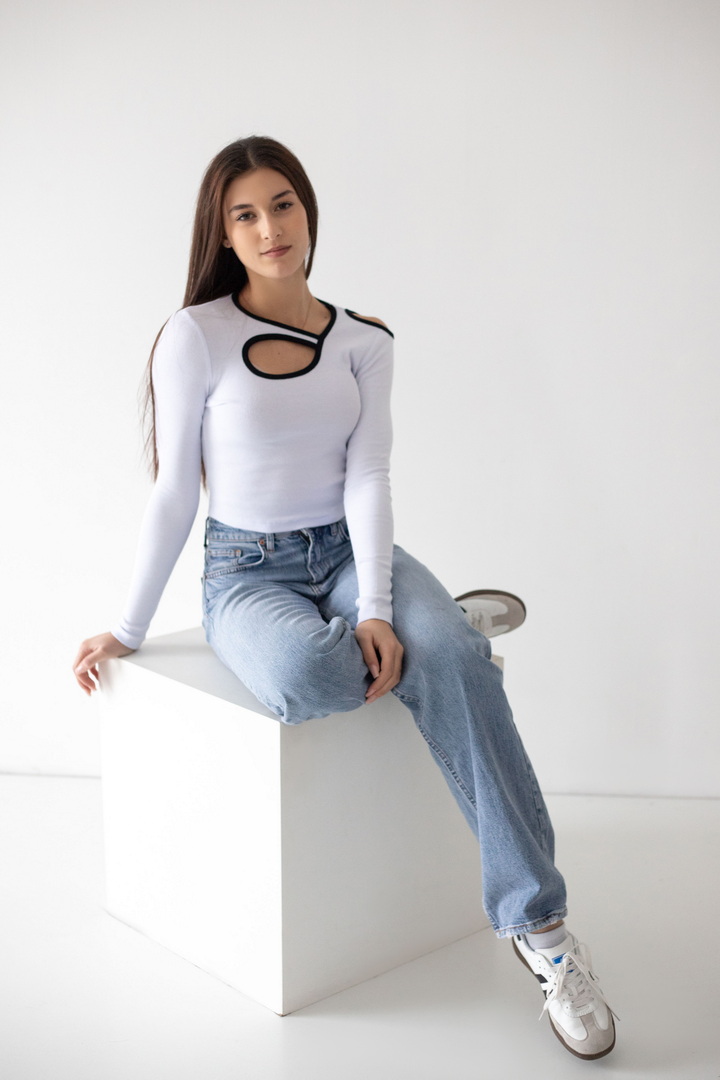 Параметри моделі: обхват грудей 85, талія 62, стегна 95, зріст 170 см. Розмір одягу S.