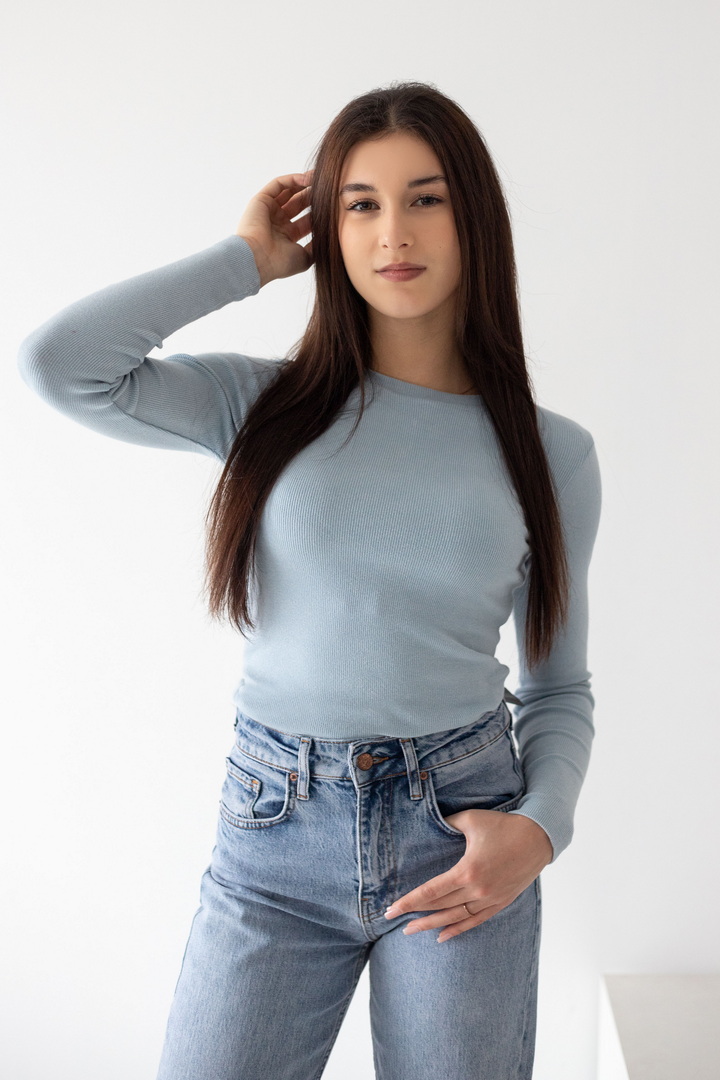 Параметри моделі: обхват грудей 85, талія 62, стегна 95, зріст 170 см. Розмір одягу S.