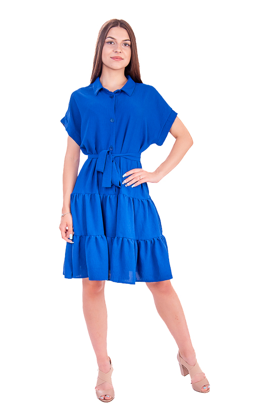 Стильна та яскрава сукня для жінок виконана з легкого, повітряного полотна "Американський креп" - хіт цього сезону. Сукня з короткими рукавами, вільною спідницею з приборкою, а також застібкою по переду на гудзики. Така сукня дуже актуальна цього літа, її легко поєднувати з будь-яким взуттям - кросівки, босоніжки, лофери.