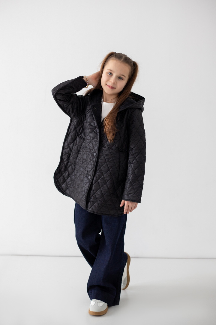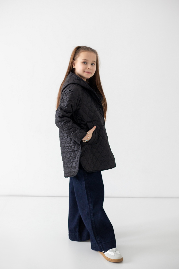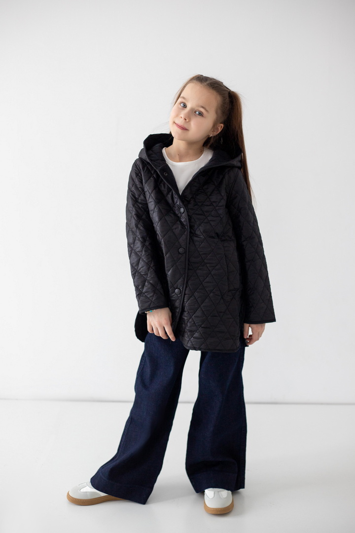 Стьобана курточка для дівчинки з незнімним капюшоном. Утеплена тонким флісом. Легка та комфортна модель на щодень.