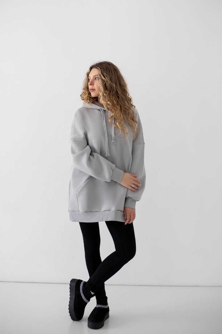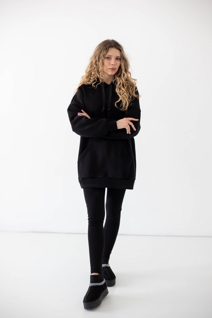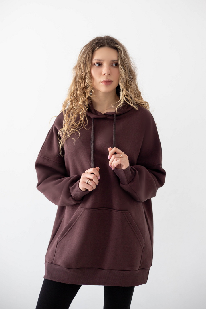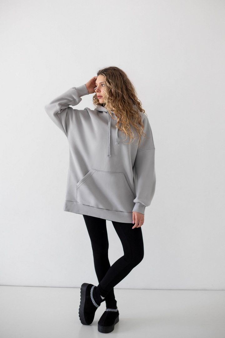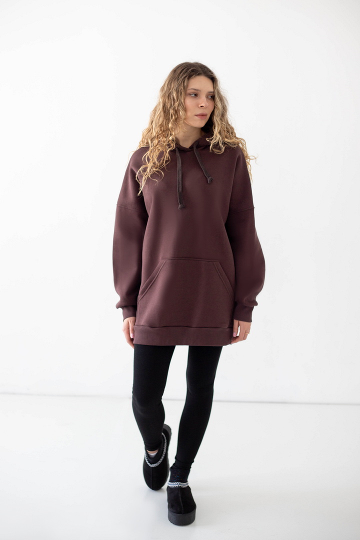 Худі для жінок у стилі "Оversize" виготовлений з полотна "Футер тринитковий з начосом". М'який трикотаж забезпечує приємні тактильні відчуття та добре тримає форму. Худі - це один із найпопулярніших видів толстовок, головні переваги - це вільний крій, капюшон, кишені на кшталт "кенгуру". Така річ є універсальною, подарує комфорт та зручність у використанні. Ідеально поєднується з джинсами, спортивними штанами чи легінсами, створюючи сучасний повсякденний образ.