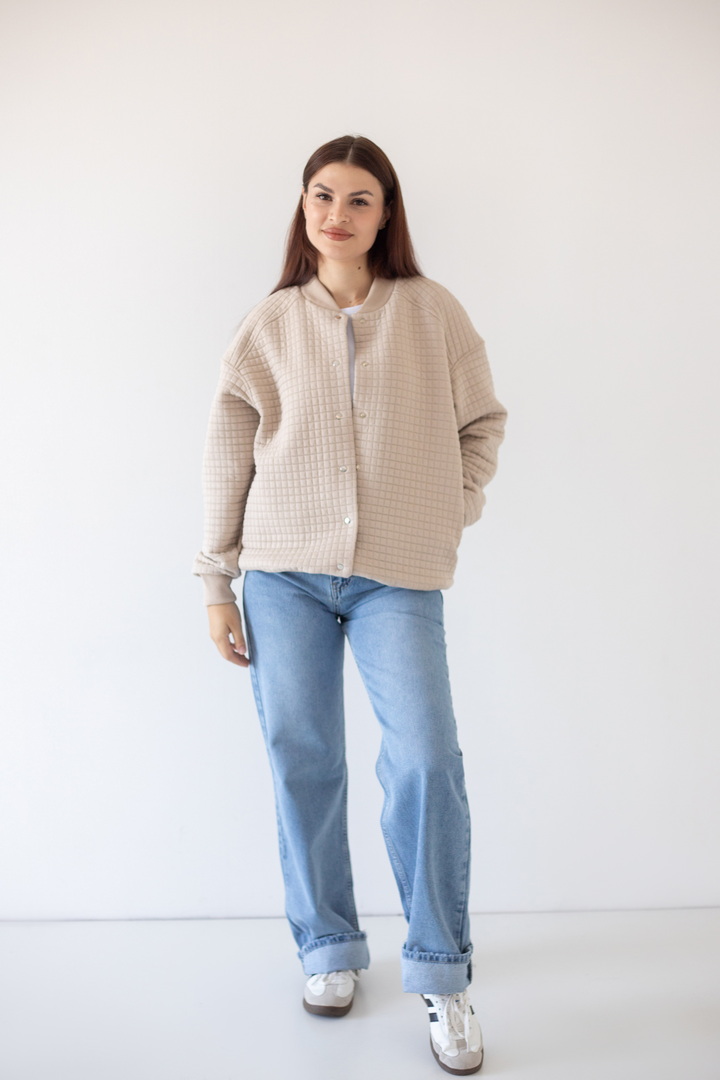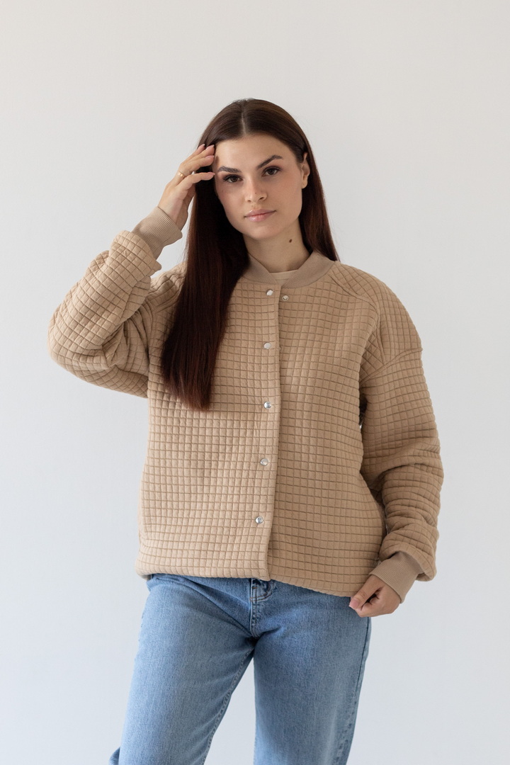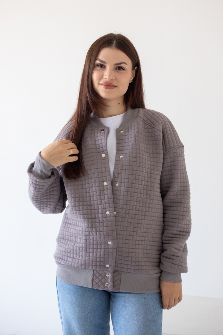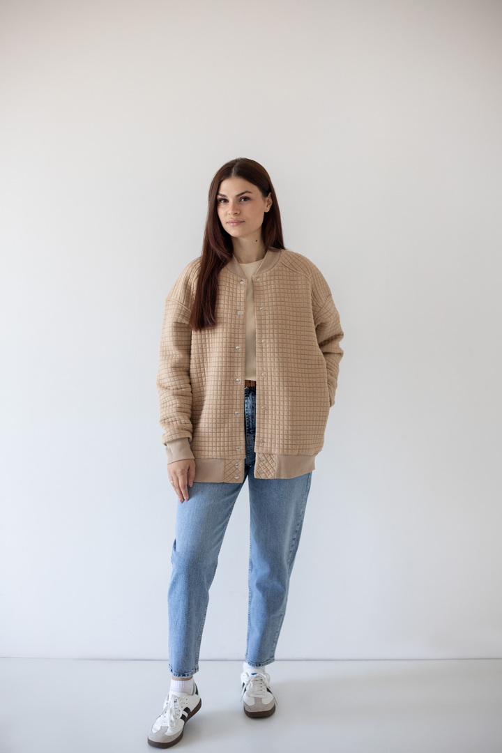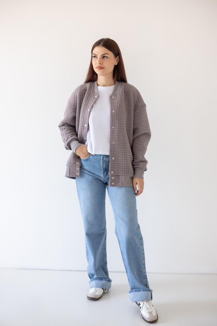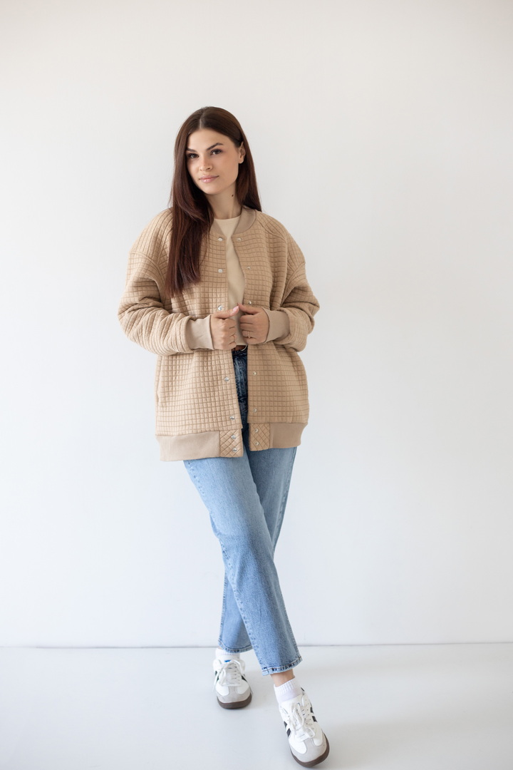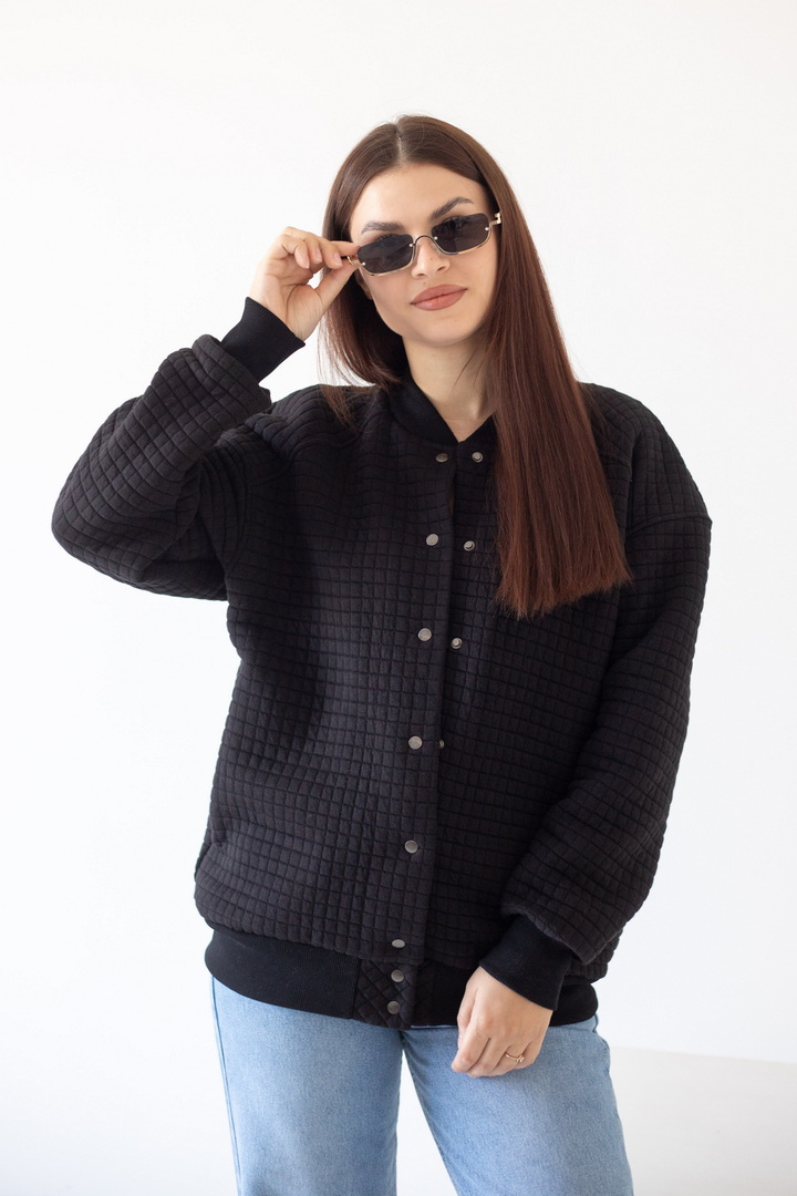 Модель має вільний крій, що забезпечує комфорт та зручність у щоденному носінні. Застібається на кнопки, має еластичні манжети та низ для кращої посадки. Тканина капітон м’яка, тепла та приємна на дотик, що робить бомбер ідеальним вибором для прохолодної погоди. Стильний та універсальний варіант для створення повсякденних образів.