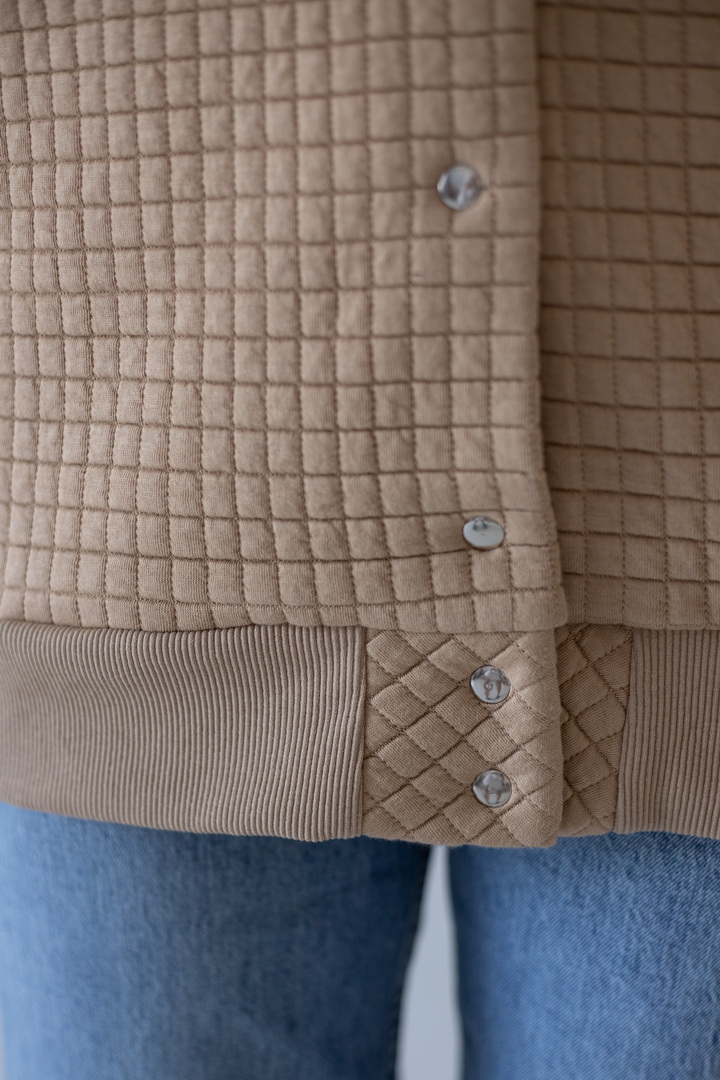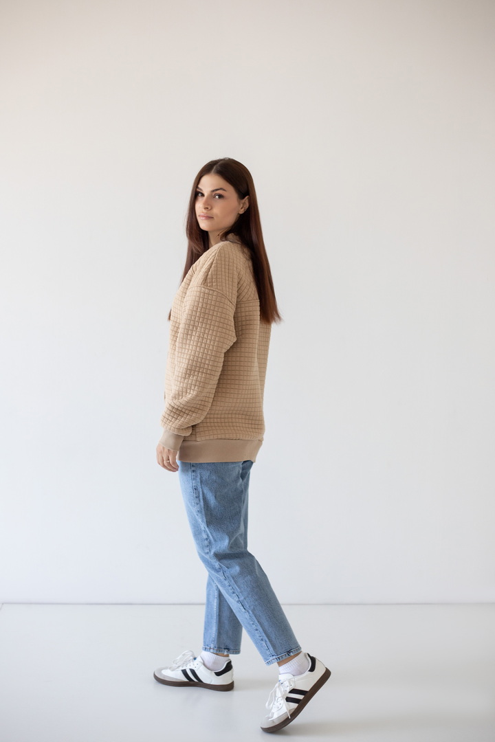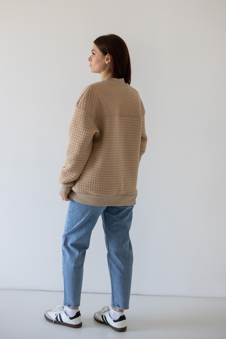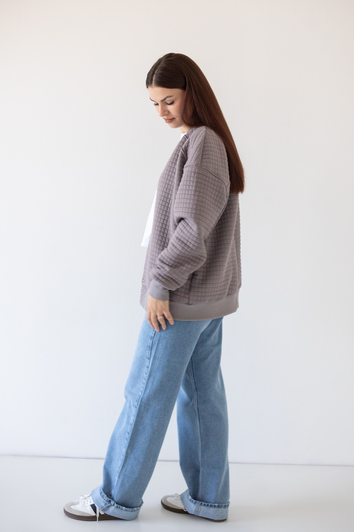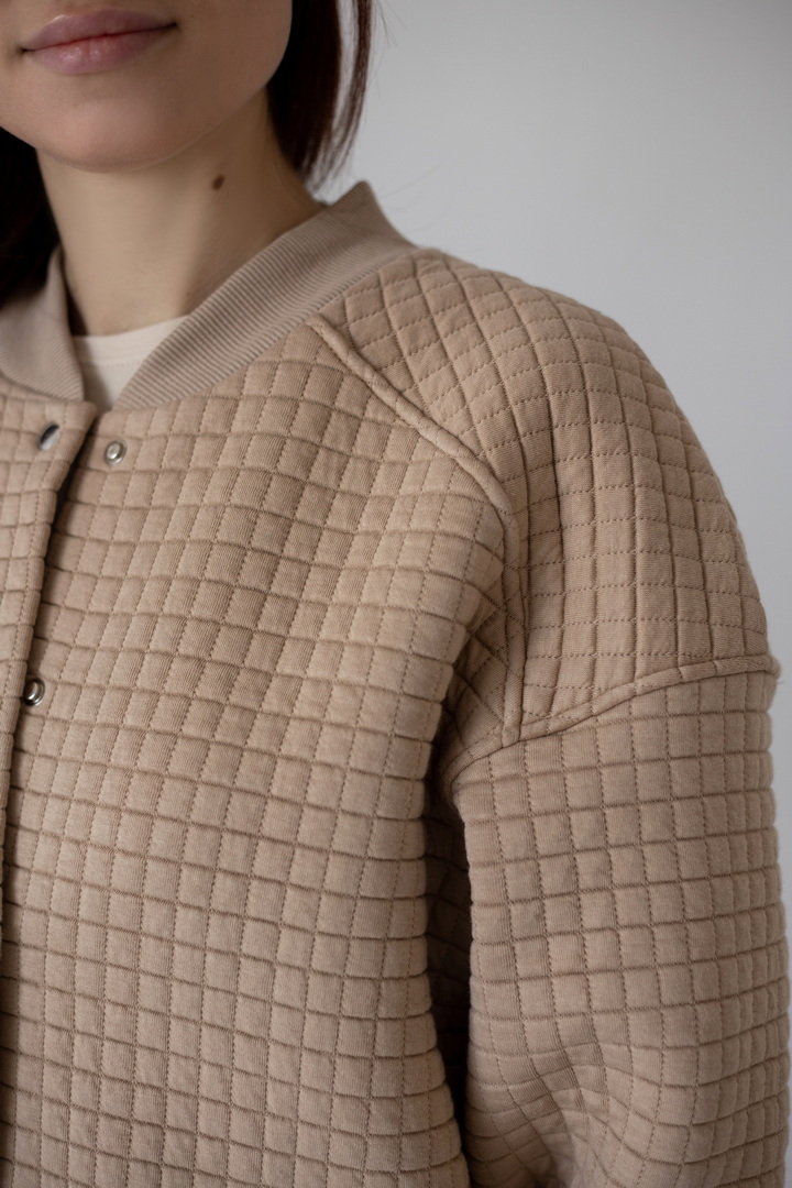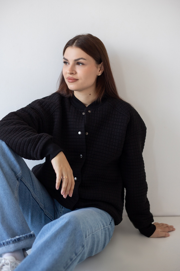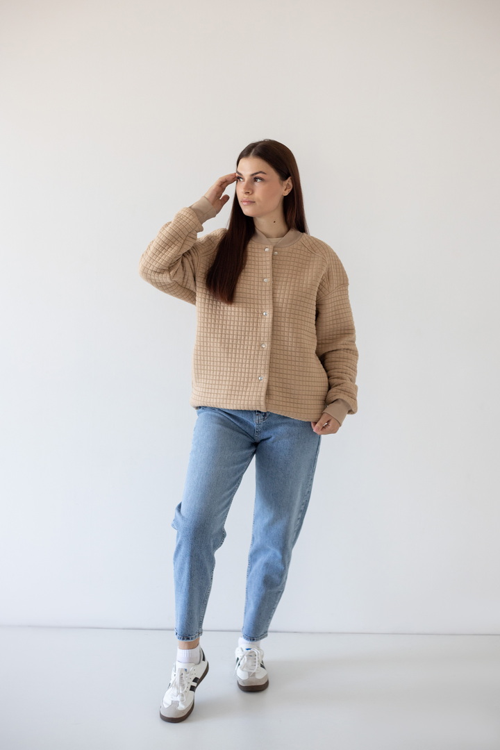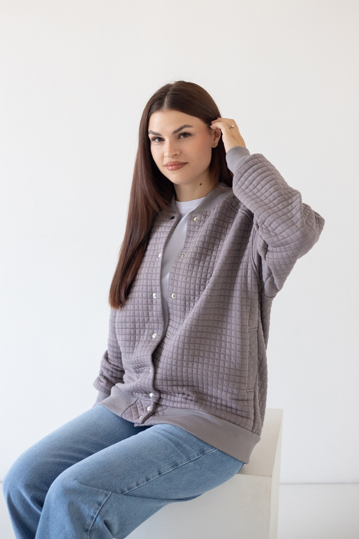 Модель має вільний крій, що забезпечує комфорт та зручність у щоденному носінні. Застібається на кнопки, має еластичні манжети та низ для кращої посадки. Тканина капітон м’яка, тепла та приємна на дотик, що робить бомбер ідеальним вибором для прохолодної погоди. Стильний та універсальний варіант для створення повсякденних образів.