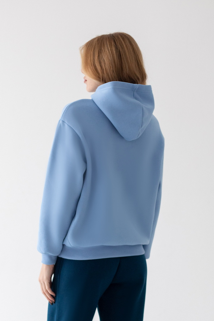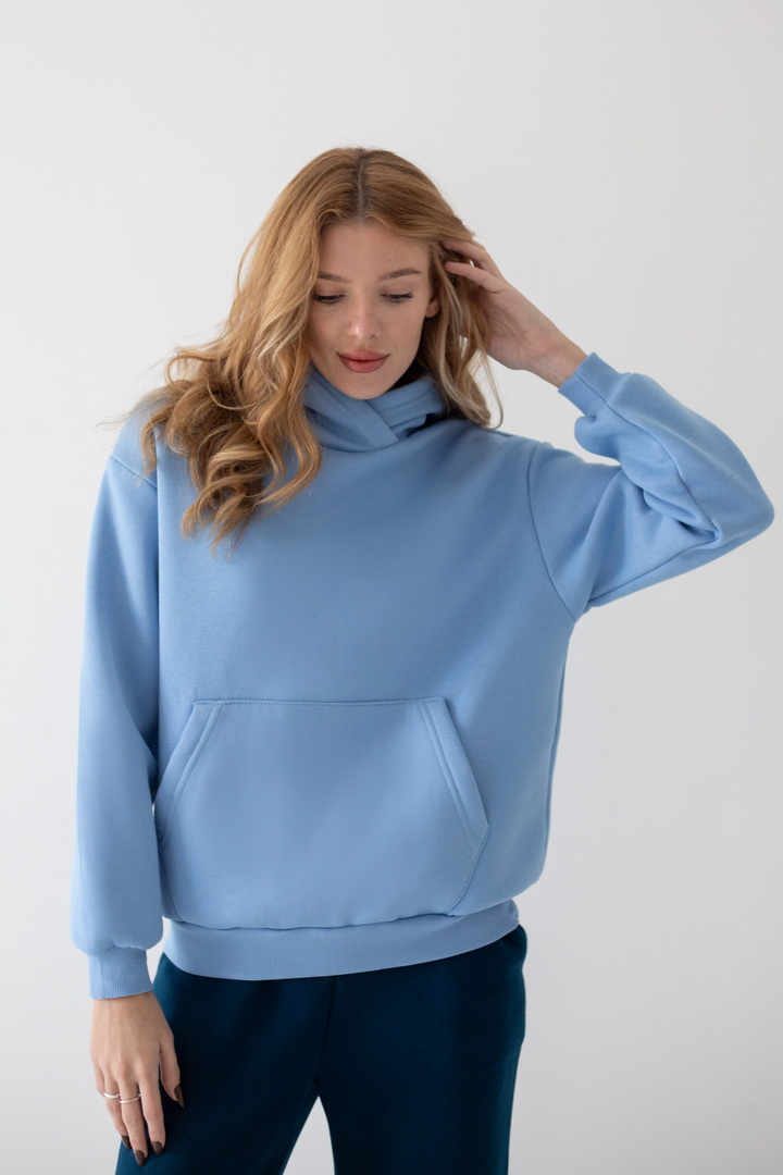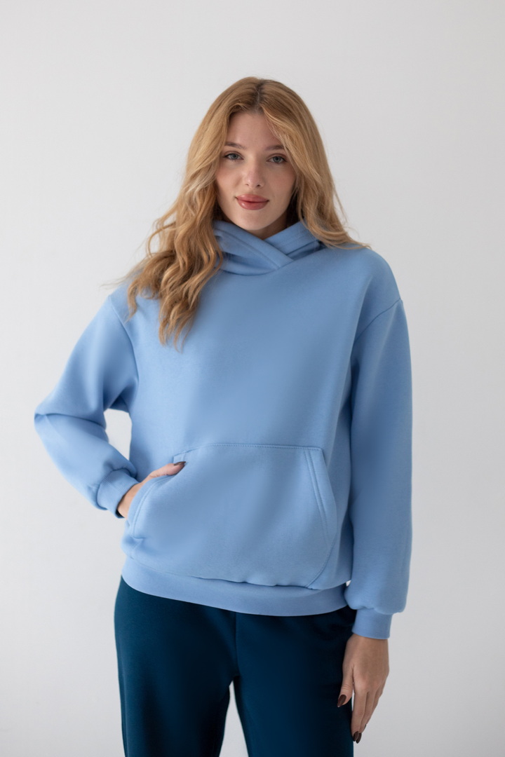 Худі для жінок виготовлений з полотна "Футер тринитковий з начосом". Худі - це один із найпопулярніших видів толстовок, головні переваги - це вільний крій, капюшон, кишені на кшталт "кенгуру". Дана модель однотонна, м'яка та зручна. Така річ є універсальною, може комбінуватися з будь-якими брюками, лосинами, джинсами – виглядає стильно і є обов'язковим атрибутом у гардеробі незалежно від статі чи віку, стане незамінною у прохолодну пору року.