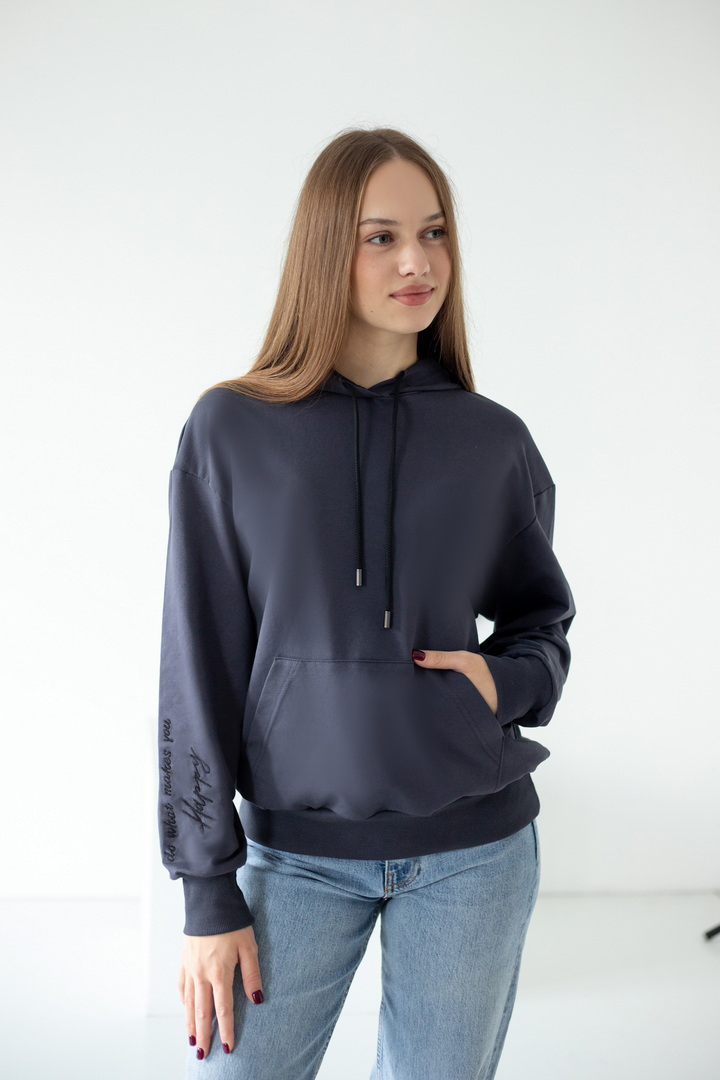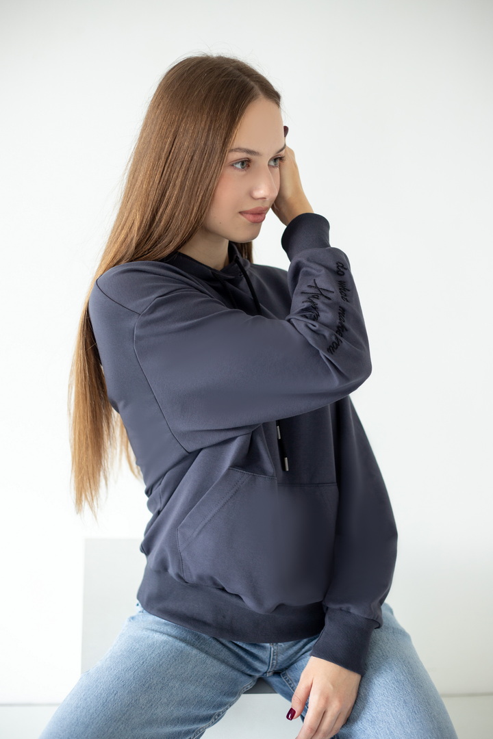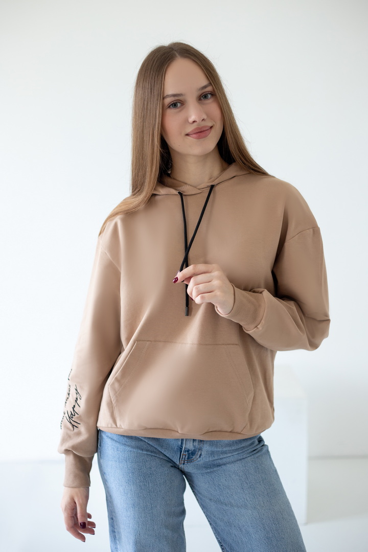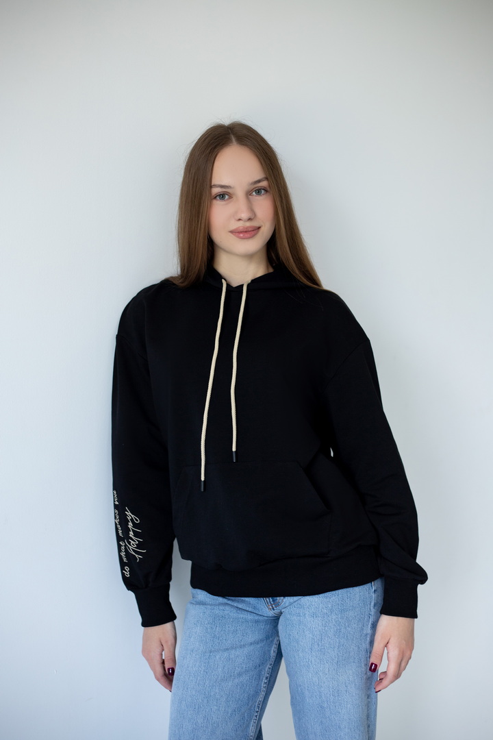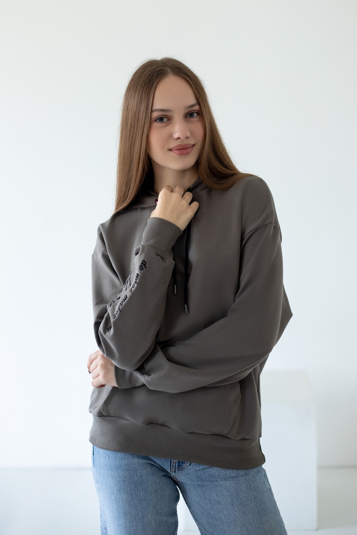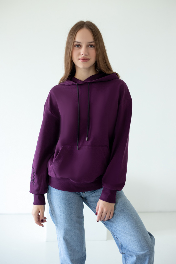 Худі для жінок виготовлено із полотна "Футер двонитковий". Худі - це один з найпопулярніших видів толстовок, основні переваги якого є вільний крій, капюшон, кишені по типу «кенгуру», та додаткові шнурки стягування. Така річ є універсальною, може комбінуватися з будь-якими брюками, лосинами, джинсами - виглядає стильно та є обов'язковим атрибутом в гардеробі незалежно від віку чи статі.