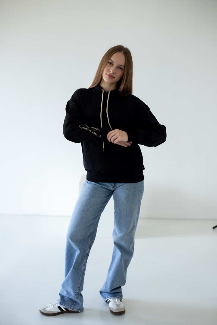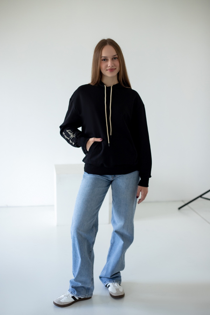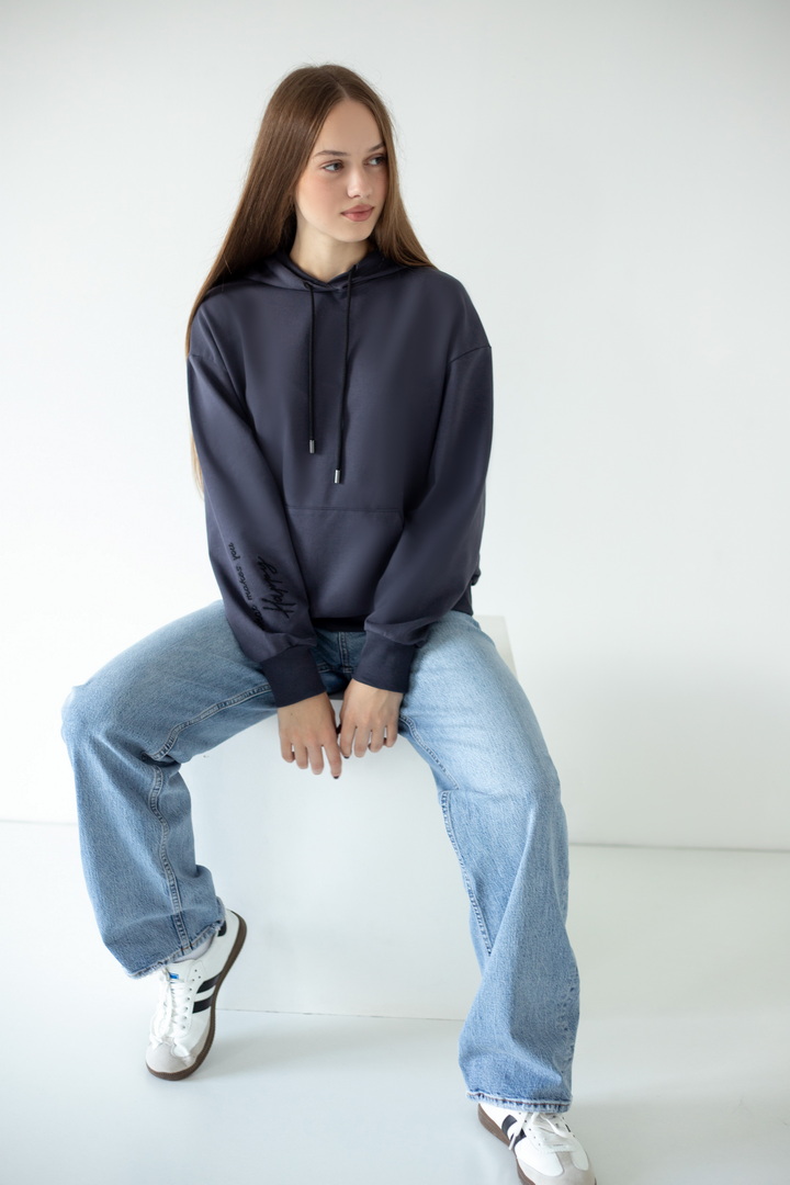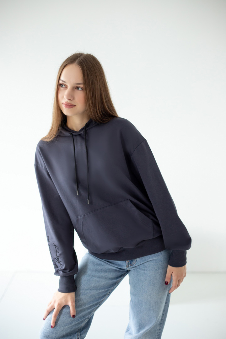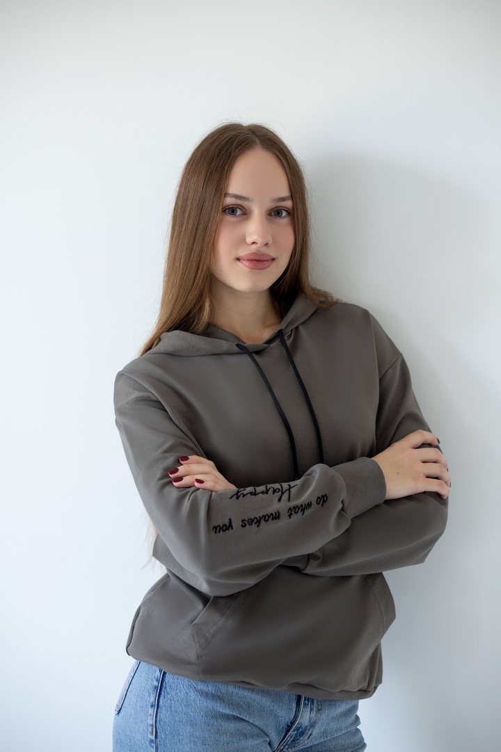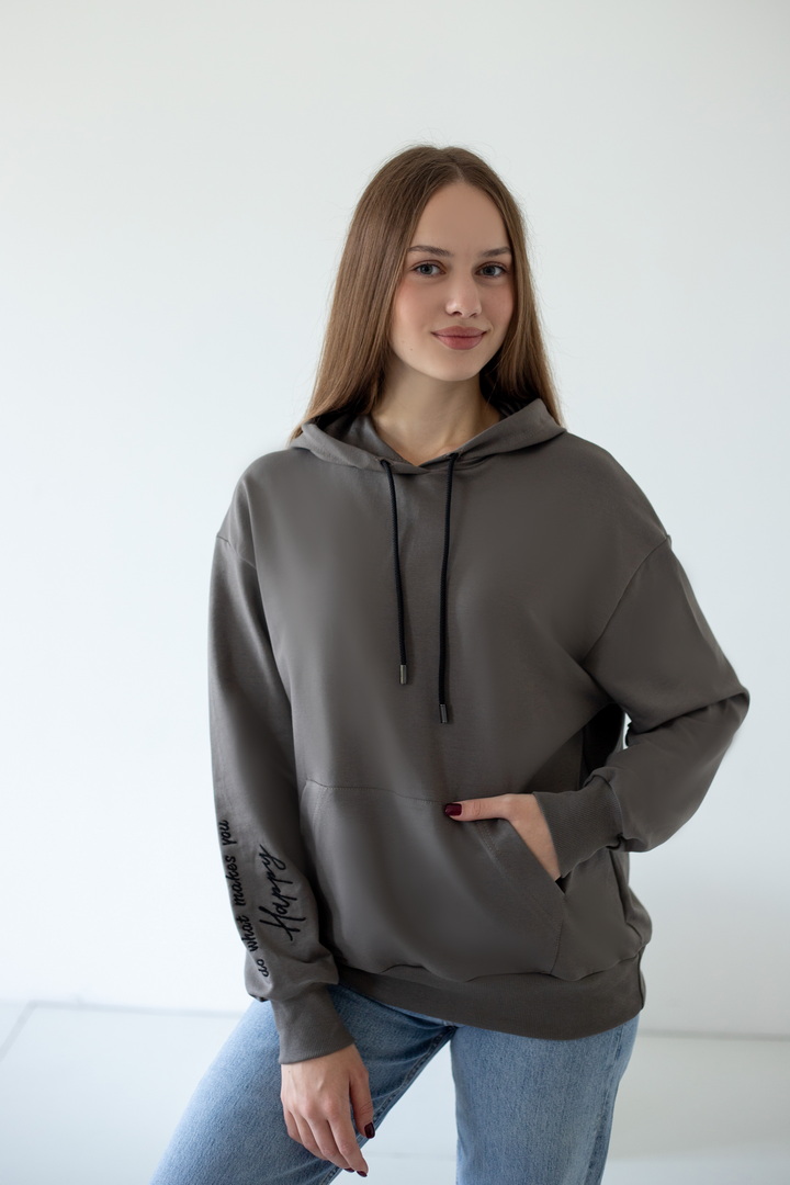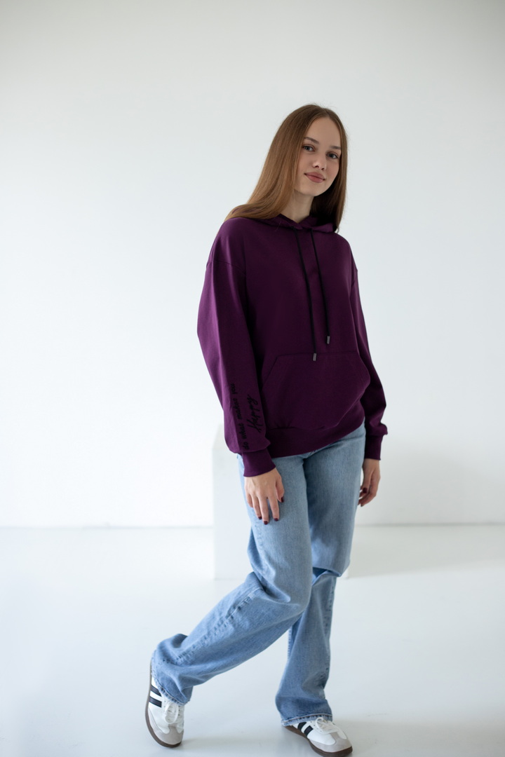 Худі для жінок виготовлено із полотна "Футер двонитковий". Худі - це один з найпопулярніших видів толстовок, основні переваги якого є вільний крій, капюшон, кишені по типу «кенгуру», та додаткові шнурки стягування. Така річ є універсальною, може комбінуватися з будь-якими брюками, лосинами, джинсами - виглядає стильно та є обов'язковим атрибутом в гардеробі незалежно від віку чи статі.