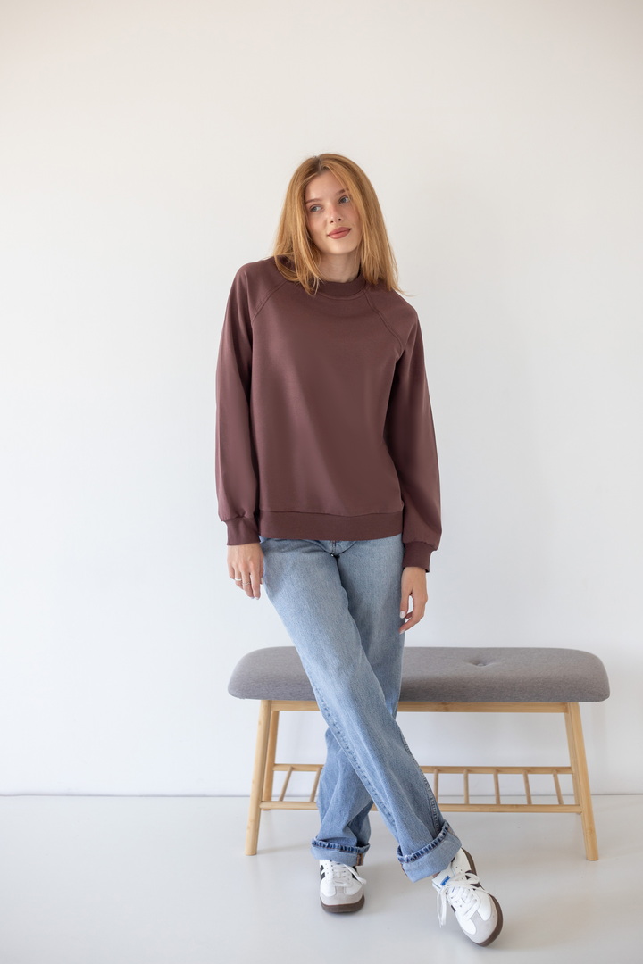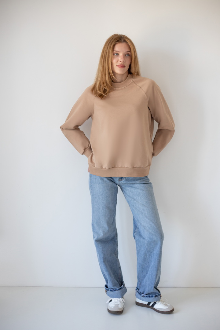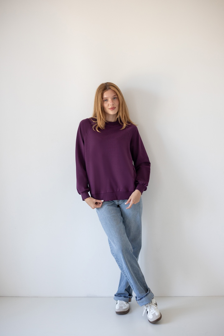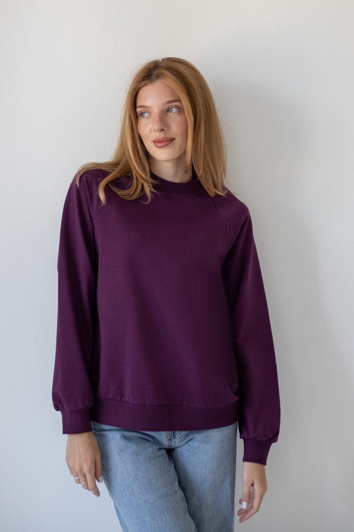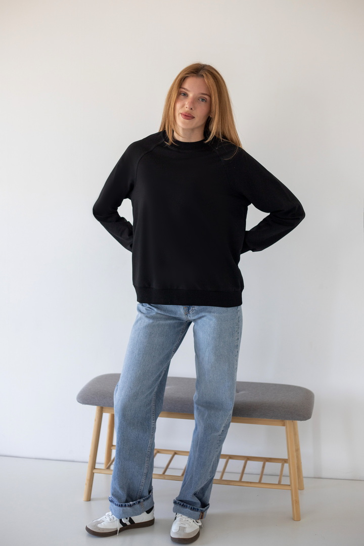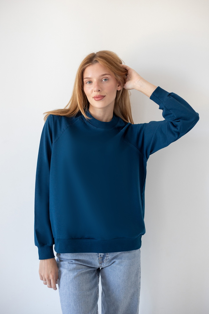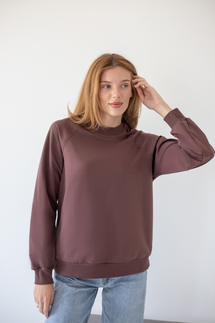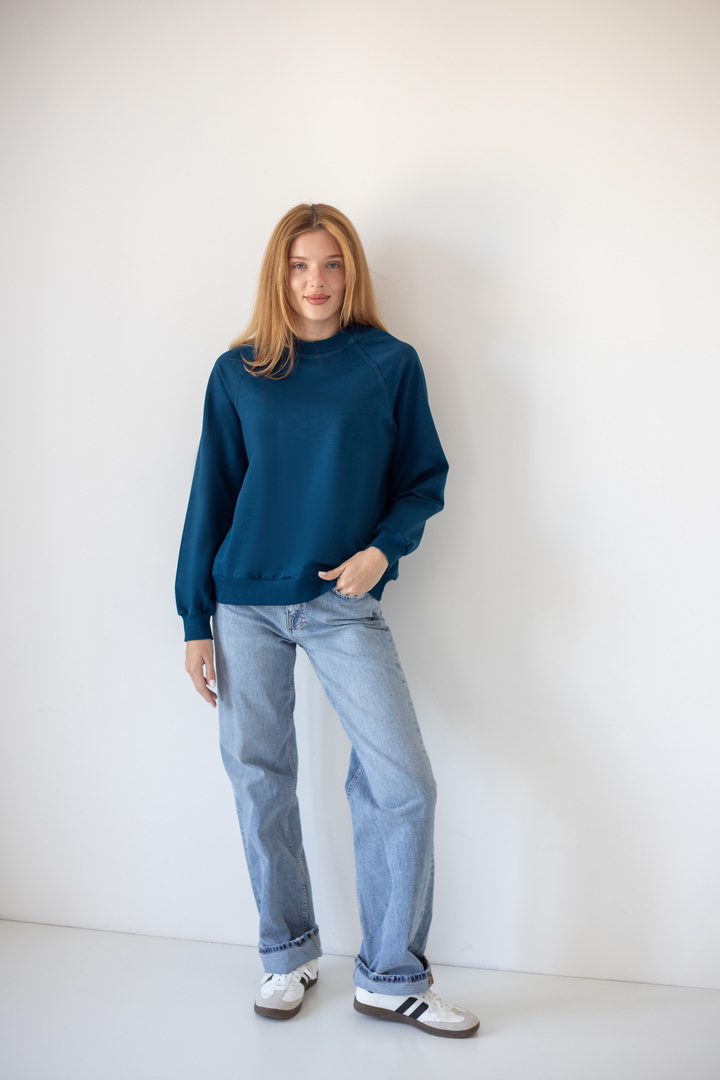 Базовий світшот для жінок виконаний з полотна "Футер двонитковий". Модель вільного крою, з округлою горловиною, рукава реглан. Манжети виготовлені з еластичного матеріалу. Полотно високої якості. Полотно: футер двонитковий Склад: 80% бавовна, 17% ПЕ, 3% еластан. Рекомендації щодо догляду: прати при температурі менше 30°C. Дозволяється машинне стирання в режимі "ручна" або "делікатна". Параметри моделі: обхват грудей 82, талія 64, стегна 92, зріст 169 см. Розмір одягу 42