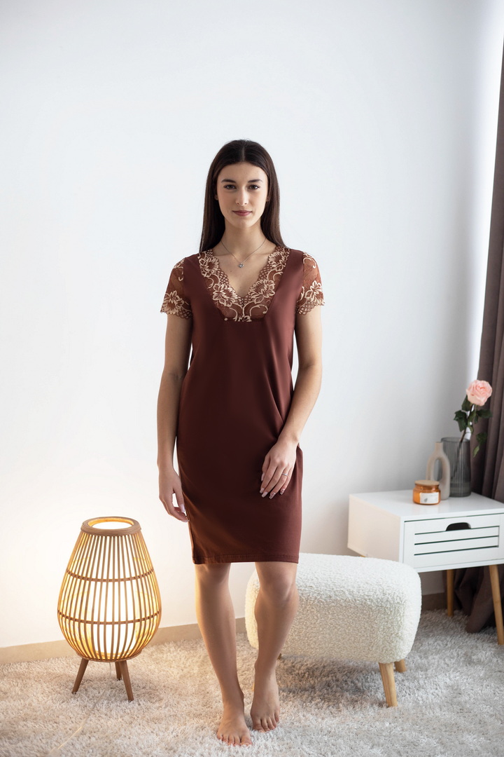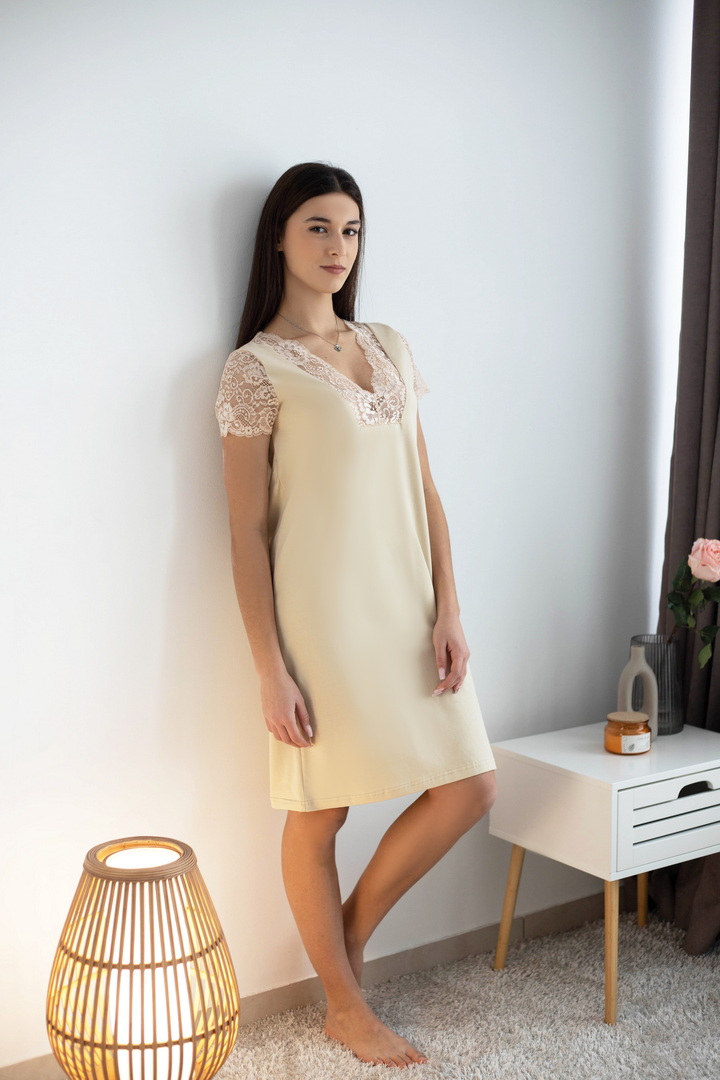 Відчуйте магію справжнього комфорту з цією нічною сорочкою із стрейч-куліру пеньє, створеною для жінок, які цінують ніжність та затишок у кожній деталі. Легка, м’яка і неймовірно приємна на дотик тканина обіймає ваше тіло, даруючи відчуття тепла та спокою. Завдяки еластичності стрейч-куліру пеньє, сорочка ідеально підлаштовується під будь-які форми. Її витончений дизайн поєднує класику та сучасність: плавні лінії, делікатні деталі і мінімалістичний крій створюють атмосферу легкості і жіночності, перетворюючи кожен вечір або ніч у справжній ритуал комфорту та релаксу. Вона не просто елемент гардеробу для сну – це ваш спосіб відчути себе особливою та розкішною. Це ідеальний вибір для тих, хто хоче поєднати стиль, затишок і якість у нічному одязі.