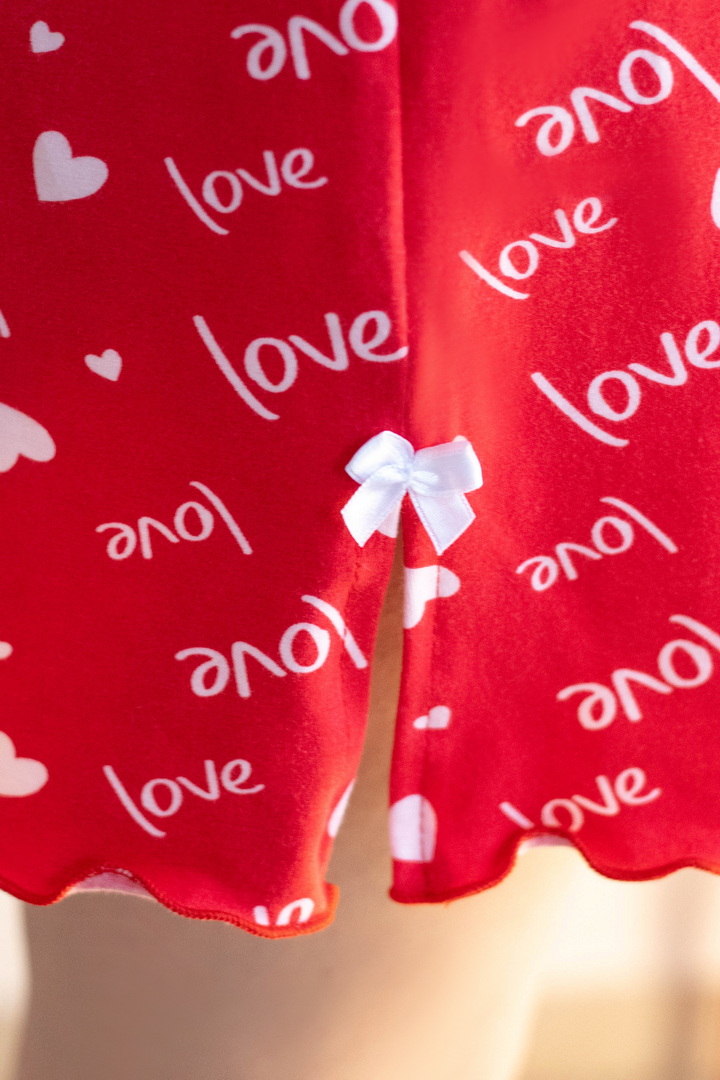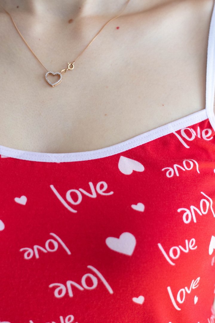 Ця сорочка створена для жінок, які обирають комфорт без компромісів і красу без зусиль. Полотно стрейч-кулір пеньє дарує неймовірну м’якість, делікатно торкається шкіри та дозволяє тілу дихати протягом усієї ночі. Завдяки еластичній структурі тканини, сорочка ідеально сідає по фігурі та підкреслює жіночні лінії. Вона не перекручується, не втрачає форму й залишається бездоганною — саме те, що хочеться носити знову і знову. Романтичний принт із мотивами любові створює ніжний настрій та додає образу особливого шарму. Тонкі бретелі та лаконічний крій роблять сорочку легкою, витонченою та неймовірно привабливою. Це не просто нічна сорочка — це маленький ритуал турботи про себе, який починається щовечора.