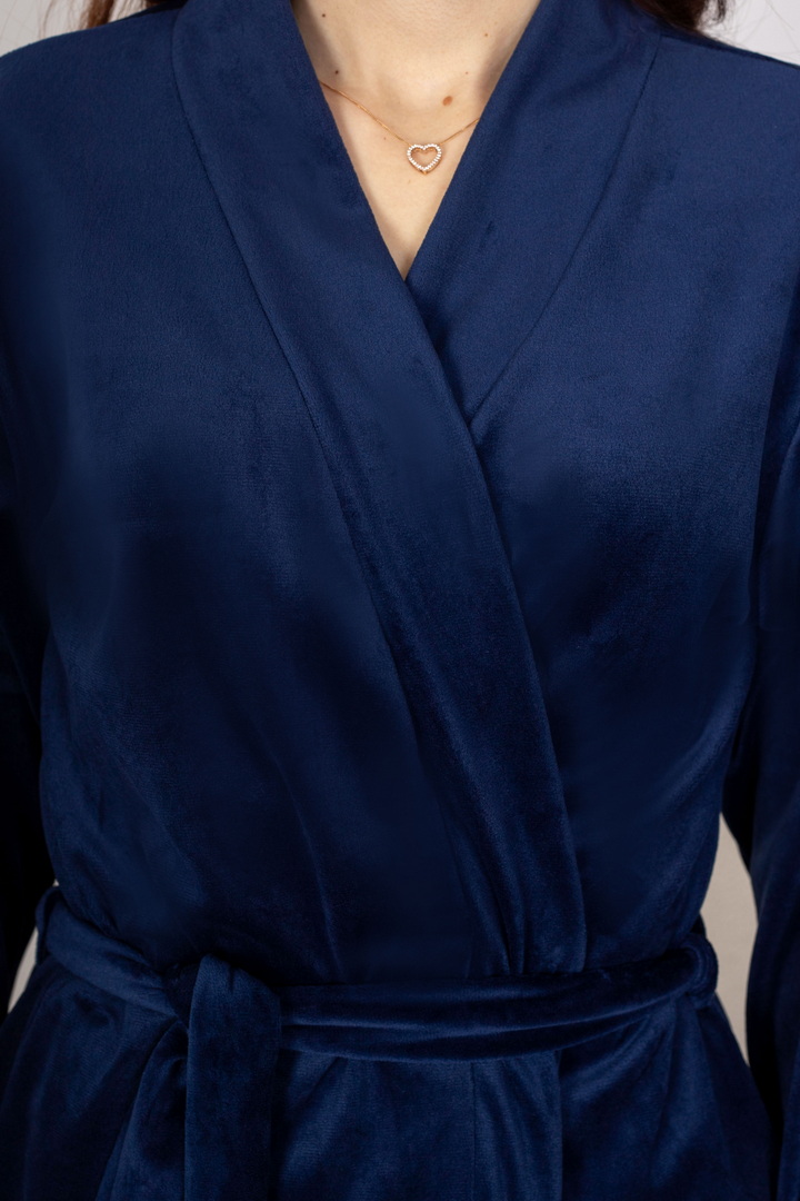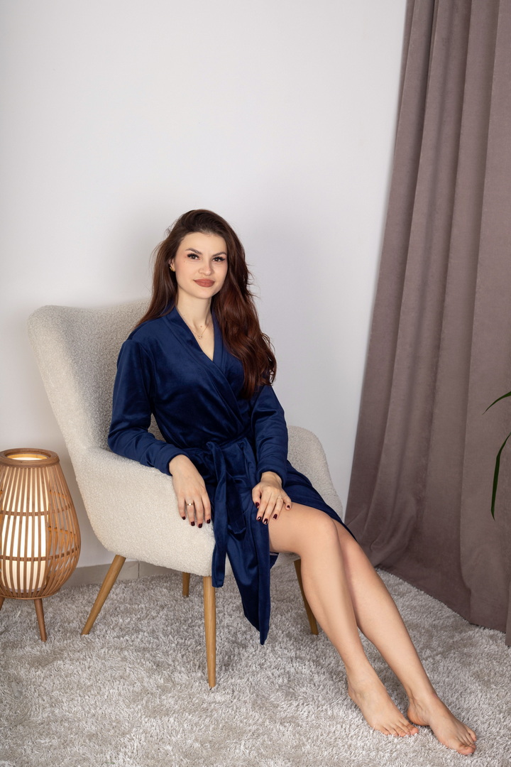 Жіночий велюровий халат створений для затишку, тепла і приємних дотиків після ванни чи під час відпочинку вдома. М'яка велюрова тканина ніжно лягає на тіло, забезпечує комфорт і виглядає стильно без зайвих деталей. Зручний крій, пояс, кишені та акуратні шви, роблять модель практичною та універсальною для щоденного використання. Підходить для тих, хто любить домашній одяг, що поєднує красу та максимальний комфорт.