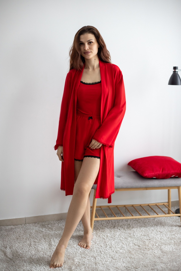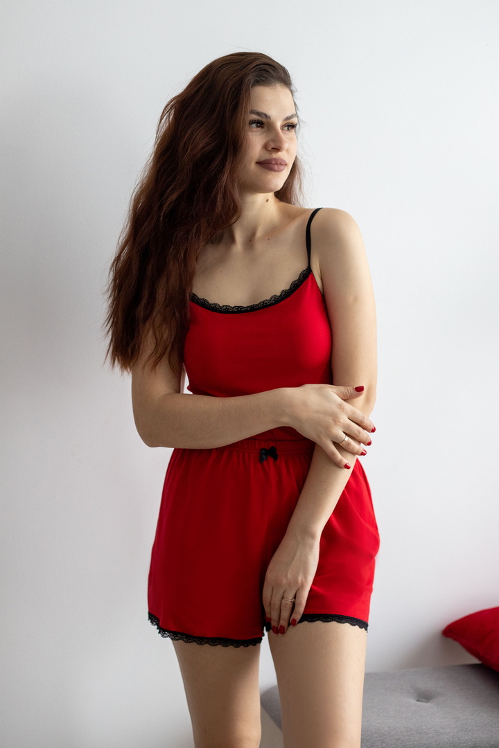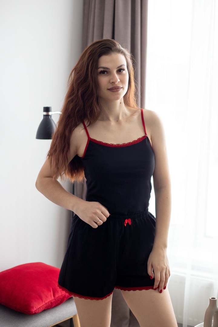 Жіночий домашній комплект "стрейч-кулір", що складається з майки на тонких бретельках та шортів, створений для максимального комфорту та легкості. Майка має зручний приталений крій, м’яко підкреслює силует. Тонкі бретелі забезпечують делікатну посадку та акуратний вигляд. Шорти виконані у вільному, комфортному фасоні, не натирають і не тиснуть, завдяки чому підходять для сну, відпочинку вдома або спокійних вечірніх рутин. Тканина приємна на дотик, дихає та добре тримає форму, даруючи відчуття легкості протягом усього дня. Комплект універсальний, стильний та практичний — ідеальний варіант для дому.