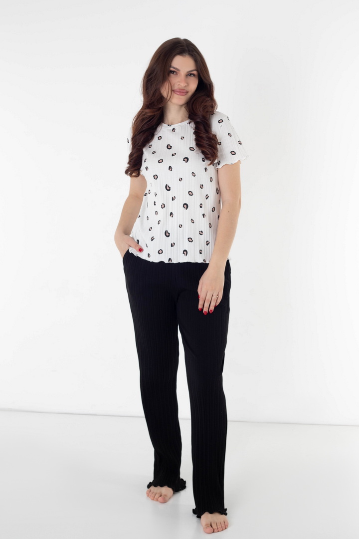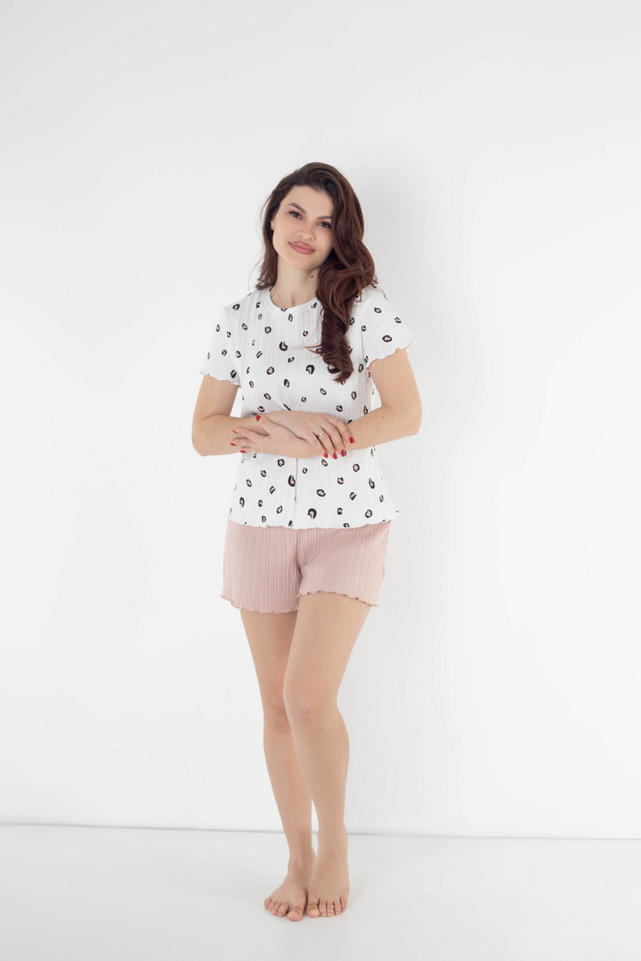 Жіночий комплект зі стрейч-куліру пеньє у рубчик — це ідеальне поєднання комфорту, стилю та ніжної жіночності. М’яка тканина гарної якості, яка приємно облягає тіло, чудово тягнеться та зберігає форму. Футболка має зручний класичний крій, який гарно сідає по фігурі та виглядає акуратно. Легка текстура рубчика додає виробу сучасного вигляду, а ніжний принт робить комплект ще більш стильним і привабливим. Шорти або штани створені для максимального комфорту: еластичний пояс м’яко фіксується на талії, не тисне та забезпечує ідеальну посадку. Комплект стане улюбленим вибором для домашнього затишку або сну. Це саме той одяг, у якому хочеться залишатися цілий день — легкий, ніжний та бездоганно комфортний.