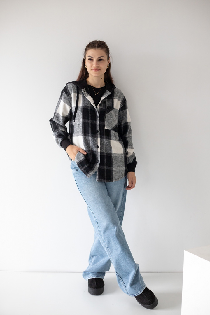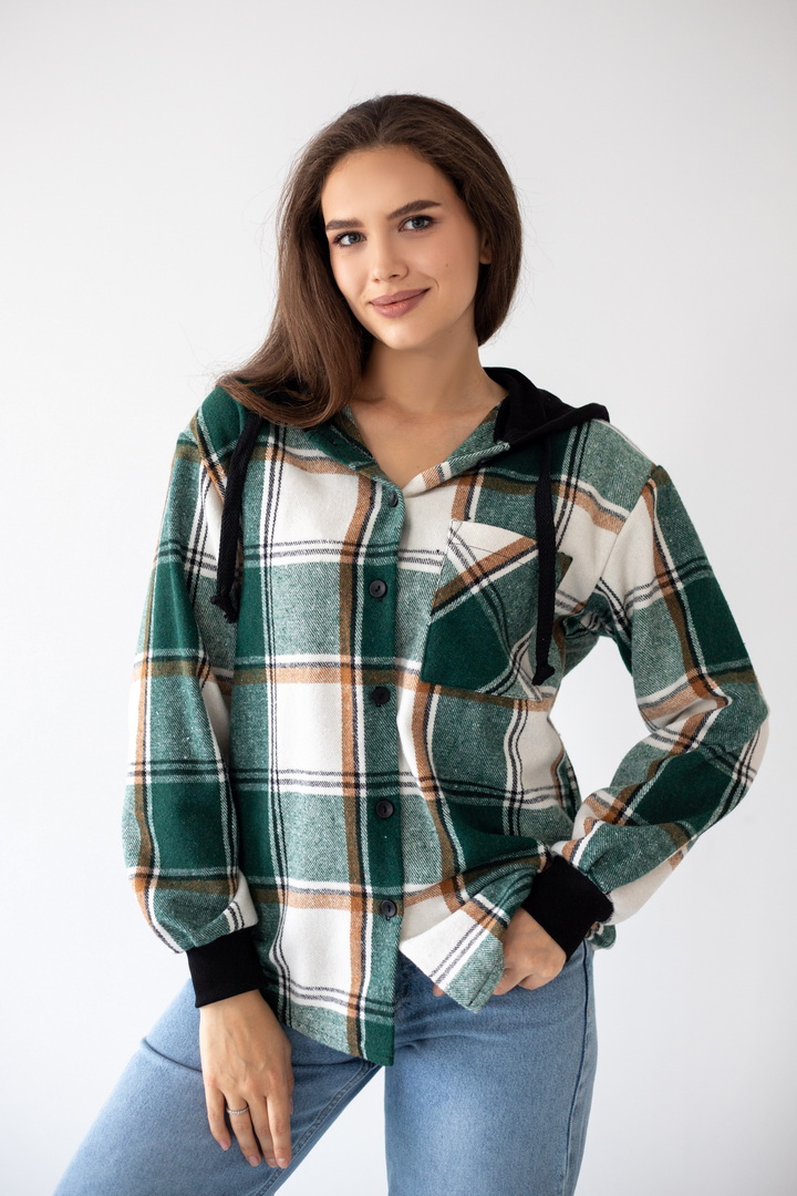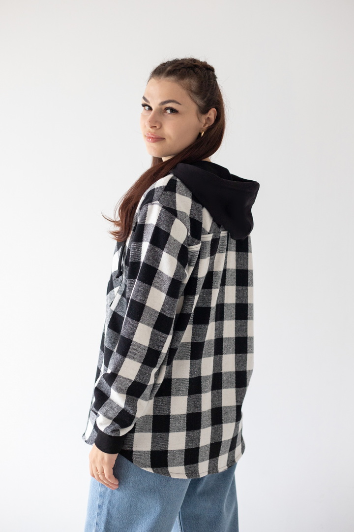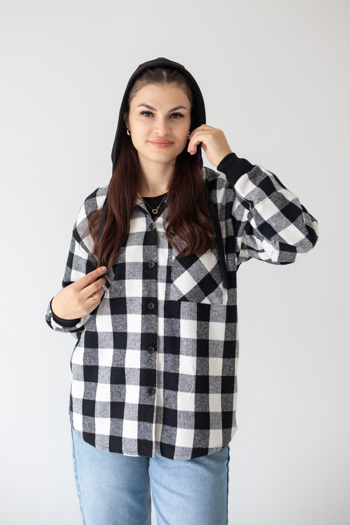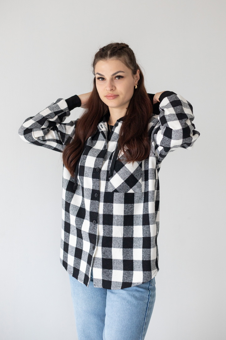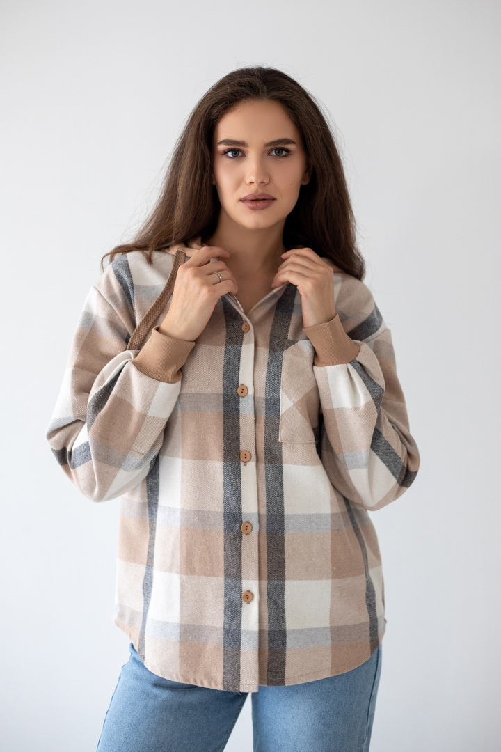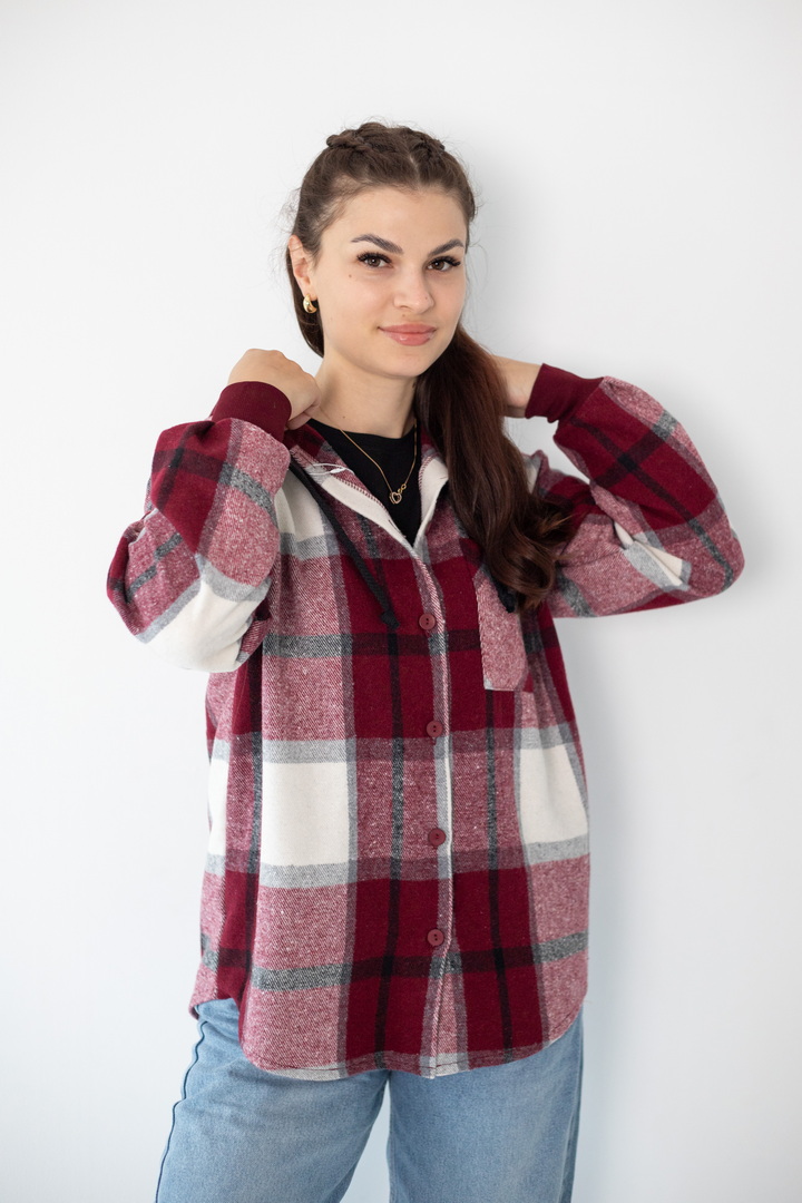 Хіт цього сезону - картата сорочка з теплої байки супер якості. Сорочка вільного покрою з довгими рукавами на еластичних манжетах, трикотажним капюшоном і стильним декоративним канатом, накладною кишенею на грудях і застібкою на гудзики. Доповнити образ рекомендується джинсами, штанами, прохолодними літніми вечорами можна носити, не застібаючи, на футболку або топ.