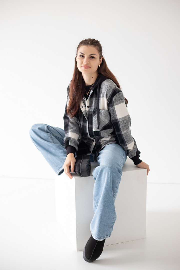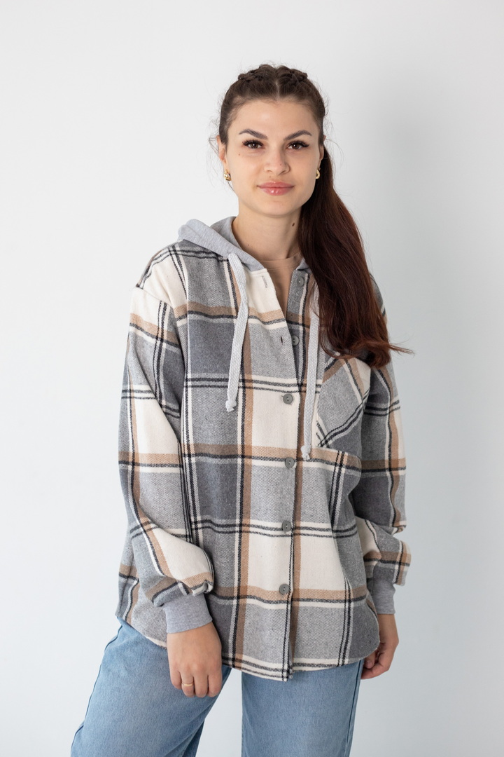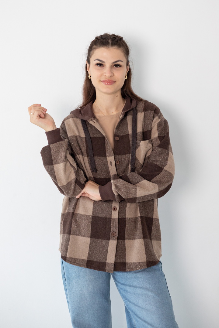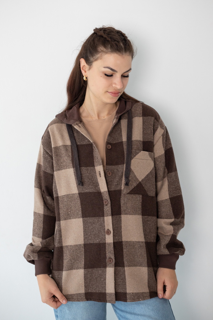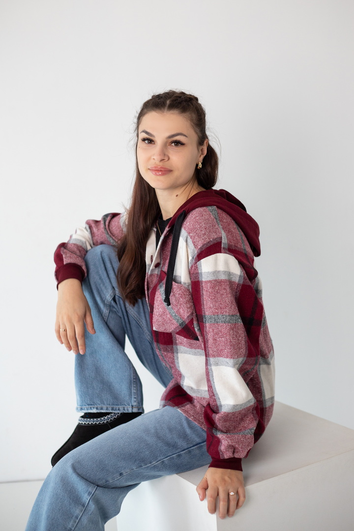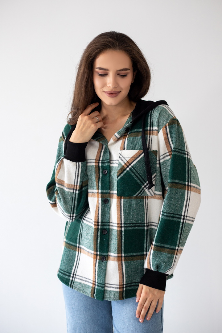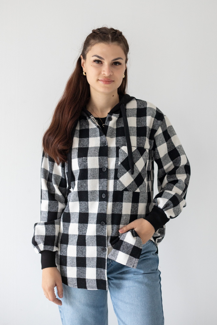 Хіт цього сезону - картата сорочка з теплої байки супер якості. Сорочка вільного покрою з довгими рукавами на еластичних манжетах, трикотажним капюшоном і стильним декоративним канатом, накладною кишенею на грудях і застібкою на гудзики. Доповнити образ рекомендується джинсами, штанами, прохолодними літніми вечорами можна носити, не застібаючи, на футболку або топ.
