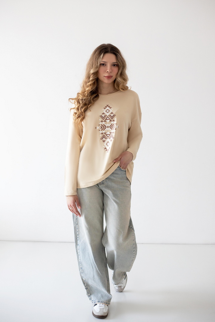Цей жіночий лонгслів із стрейч-куліру пеньє — саме той must-have, який закохує з першого дотику. Легкий, ніжний та неймовірно комфортний, він створений для активного щоденного життя, коли хочеться виглядати стильно без зайвих зусиль. Тканина пеньє відрізняється особливою м’якістю та гладкістю, чудово пропускає повітря та забезпечує максимальний комфорт упродовж усього дня. Родзинка моделі — різноманітні стильні принти, які додають характеру кожному образу. Від ніжних і мінімалістичних до яскравих і сміливих — ти легко обереш варіант під свій настрій. Це той випадок, коли комфорт виглядає дорого, а простота — стильно. Одягни — і відчуй різницю.