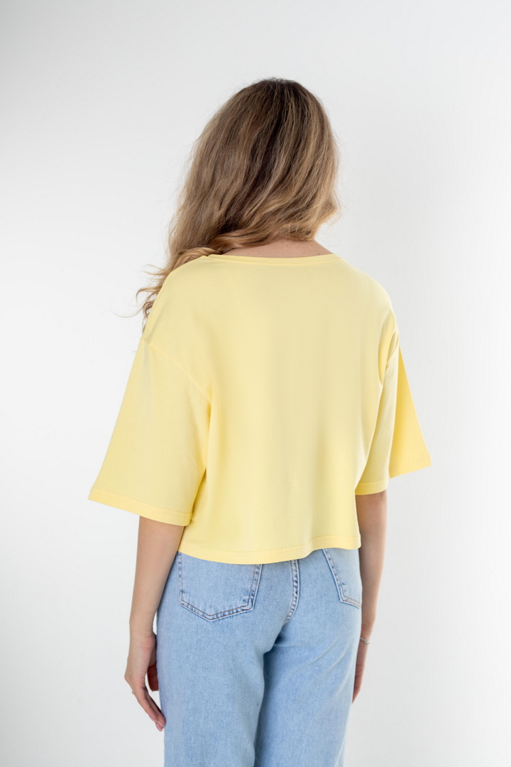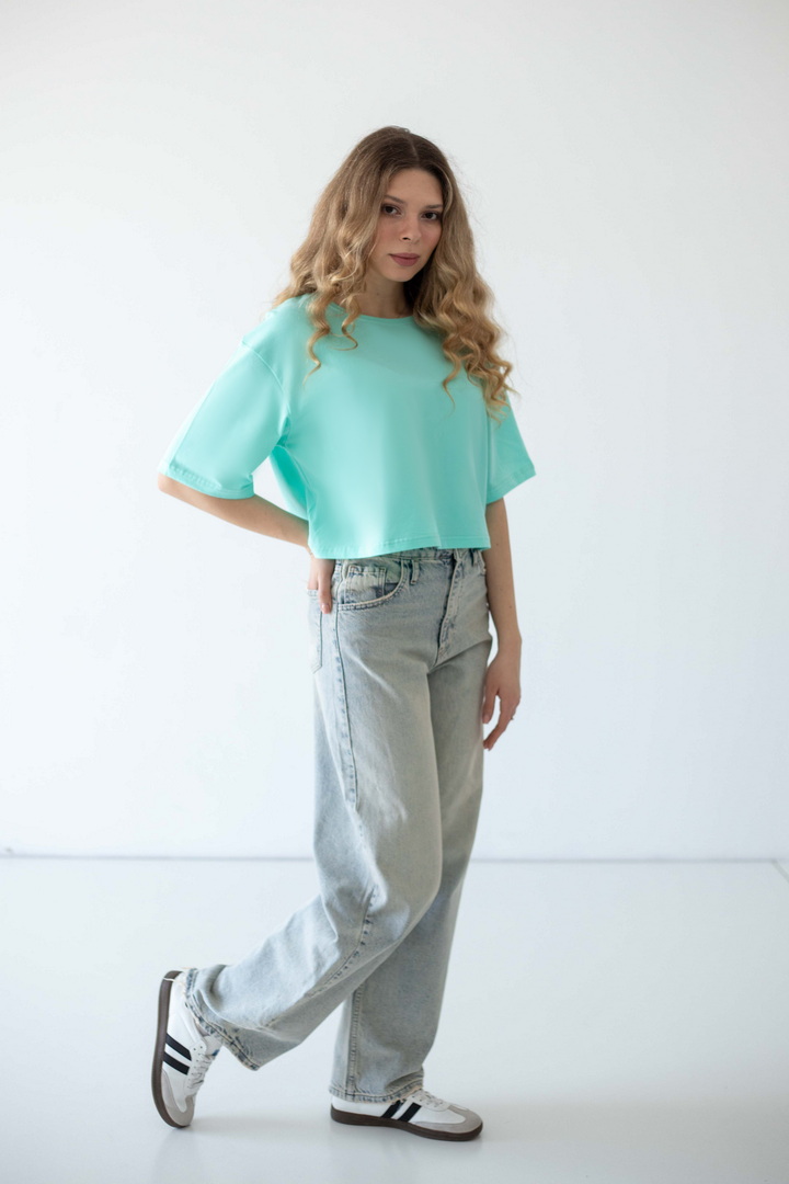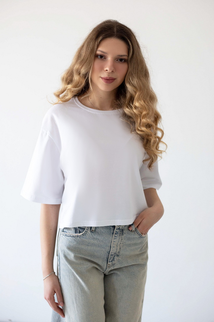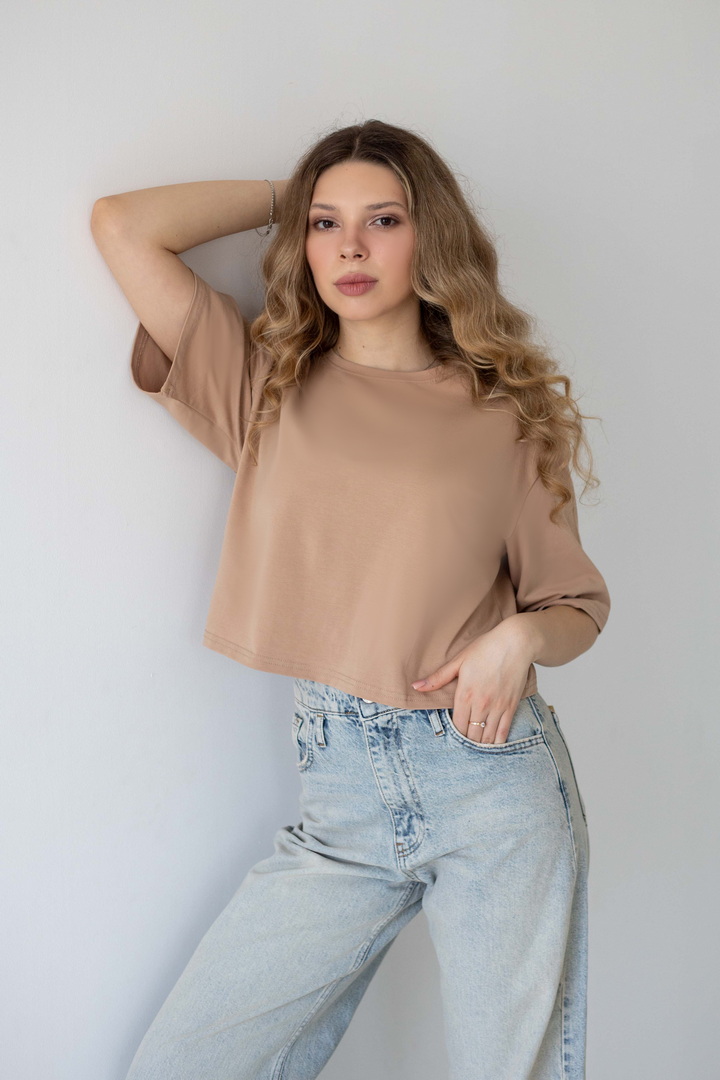 Ця жіноча футболка зі стрейч-куліру пеньє — про відчуття легкості. Ніжна, шовковиста на дотик тканина м’яко огортає тіло, створюючи відчуття абсолютного комфорту протягом усього дня. Завдяки еластичності матеріалу, модель делікатно підлаштовується під силует. Вільний, сучасний крій із плавною лінією плеча формує розслаблений, трендовий силует, який виглядає стильно. Лаконічний дизайн відкриває безліч можливостей для стилізації: вона легко поєднується з джинсами, шортами чи спідницями, створюючи як базові повсякденні образи, так і більш виразні аутфіти. Ця футболка — твій щоденний комфорт, впевненість у собі та стиль.
