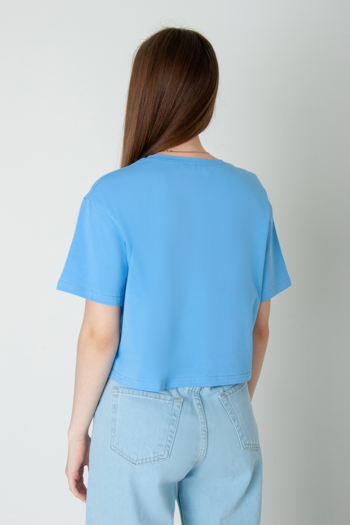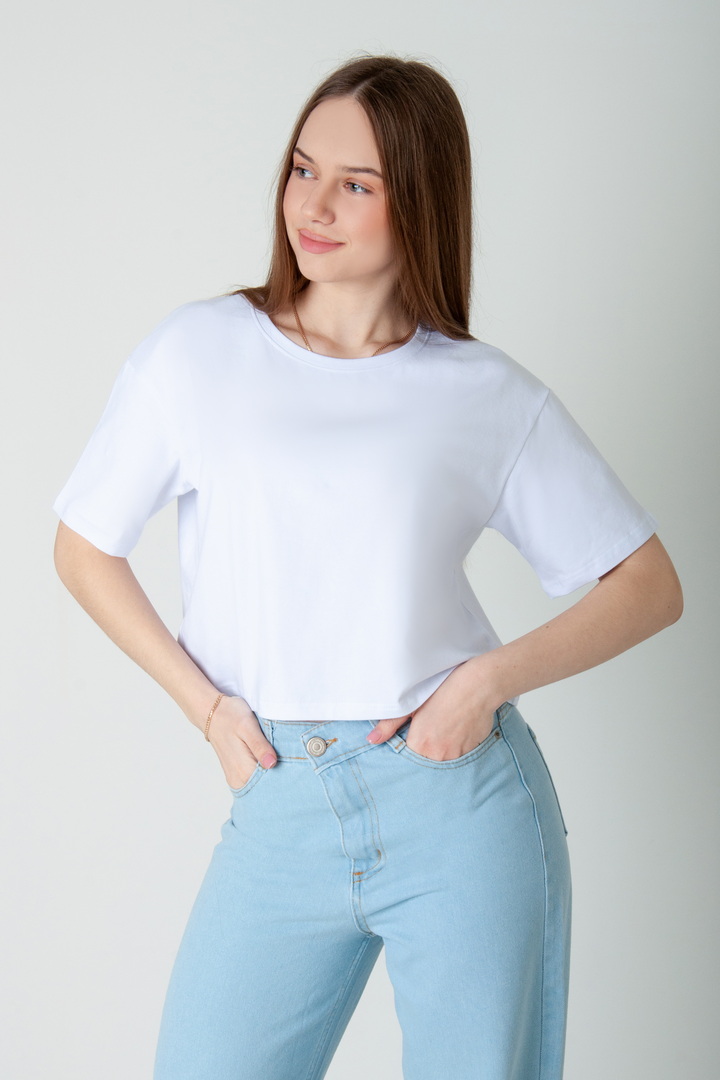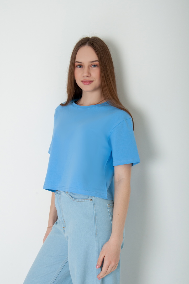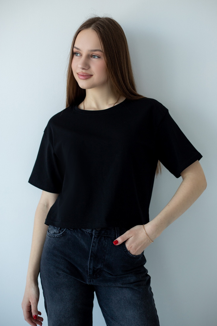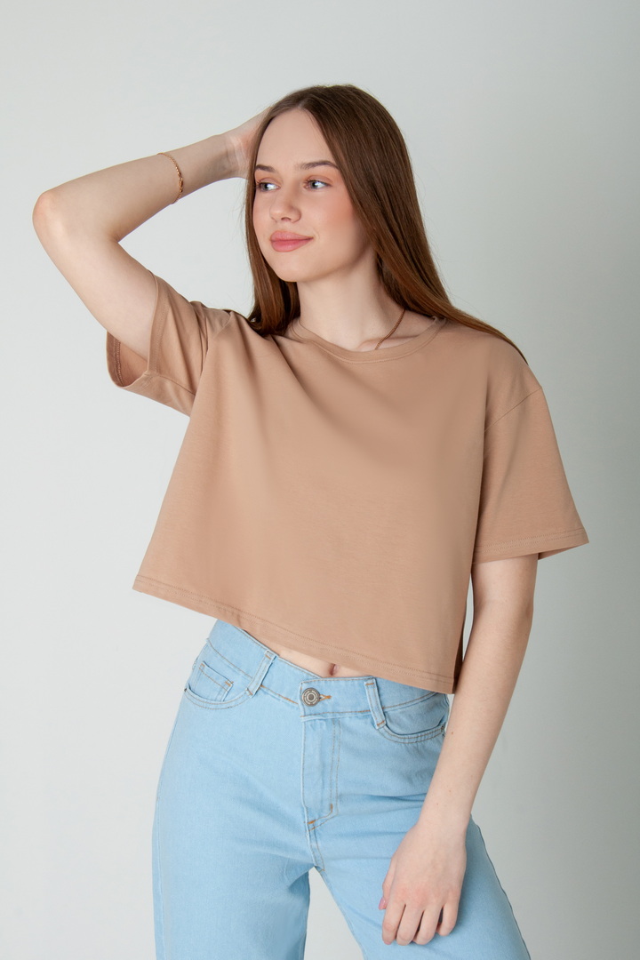 Крутезна футболка - основа для вдалого образу. Укорочена футболка для жінок, виготовлена з еластичного та приємного на дотик полотна "Стрейч-кулір", в стилі "Oversize". Модель з округлим вирізом та коротким рукавом. Однотонна футболка чудово комбінується з джинсами, шортами, спідницями.