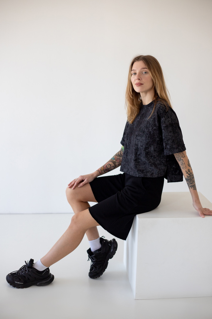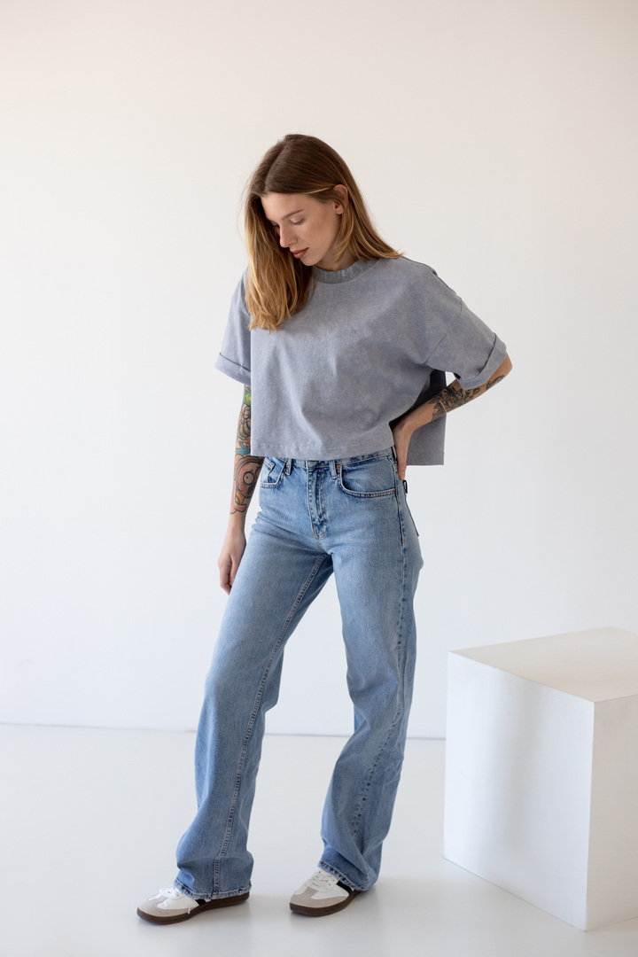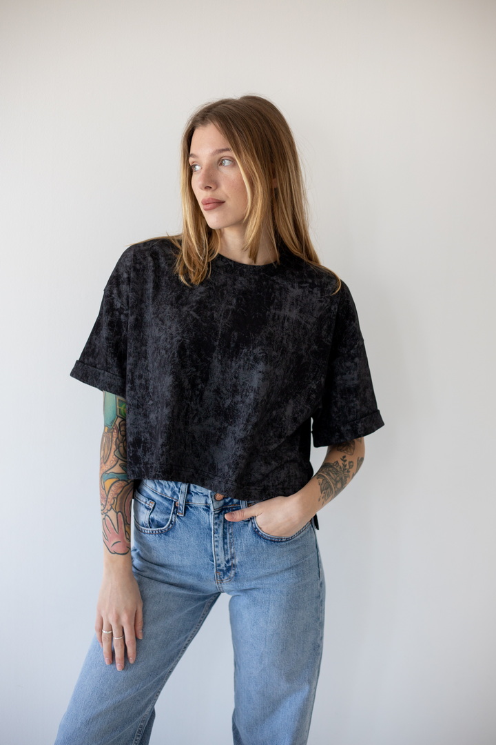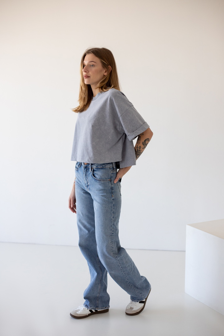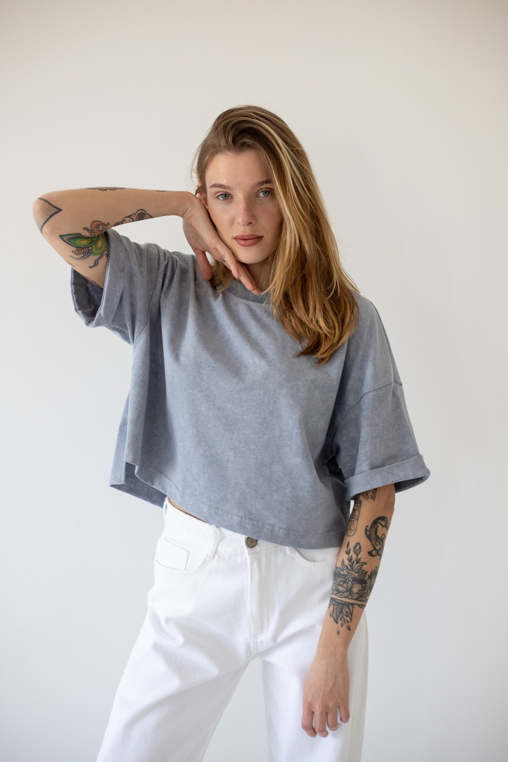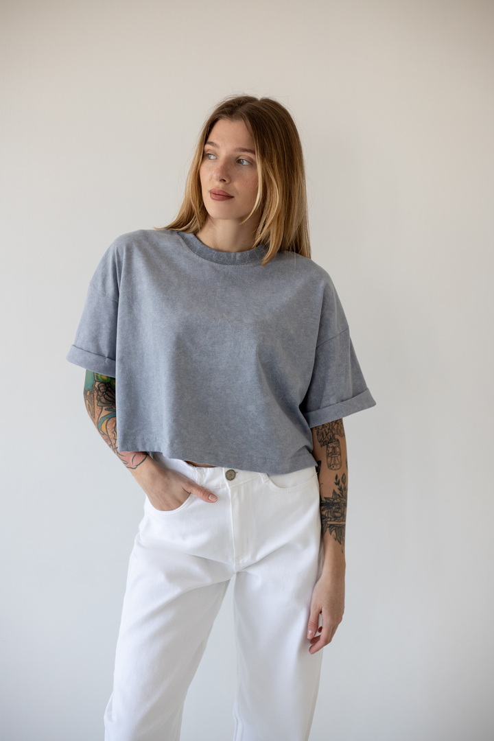 Крутезна футболка - основа для вдалого образу. Укорочена футболка для жінок, виготовлена з приємного на дотик полотна "Кулір", в стилі "Oversize". Модель з округлим вирізом та коротким рукавом. Футболка чудово комбінується з джинсами, шортами, спідницями.