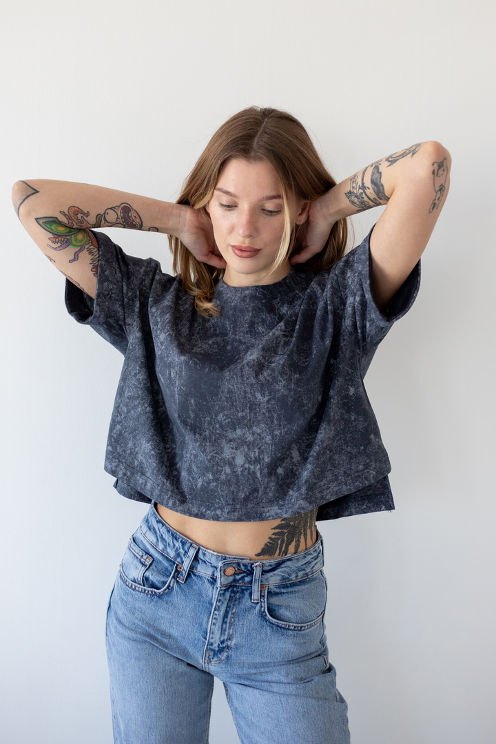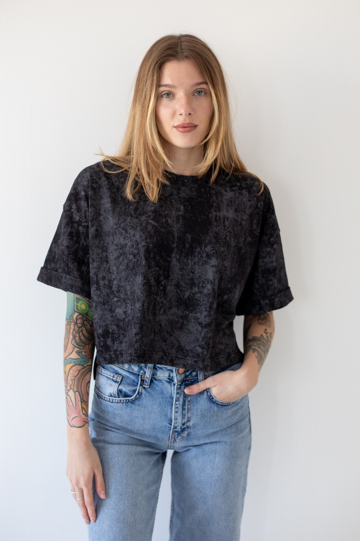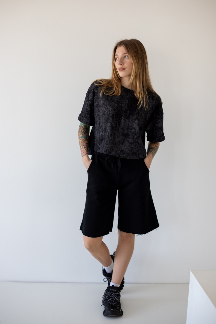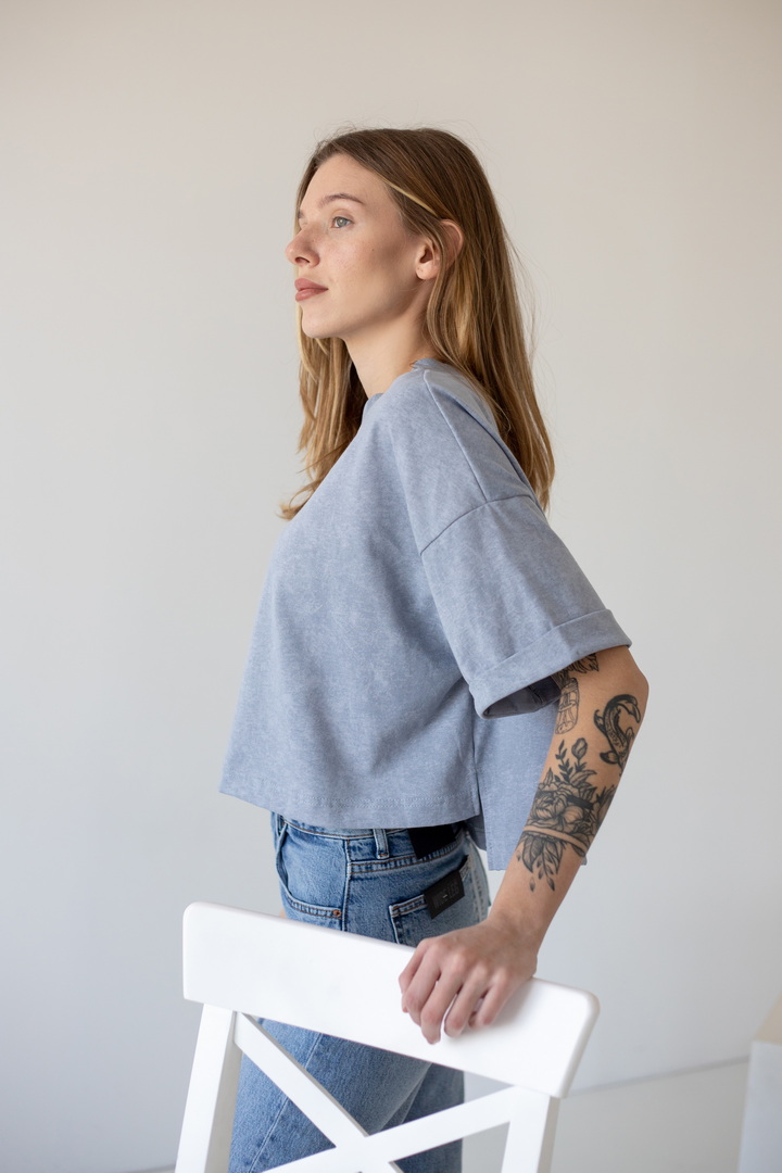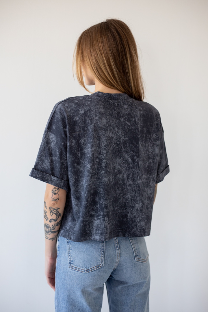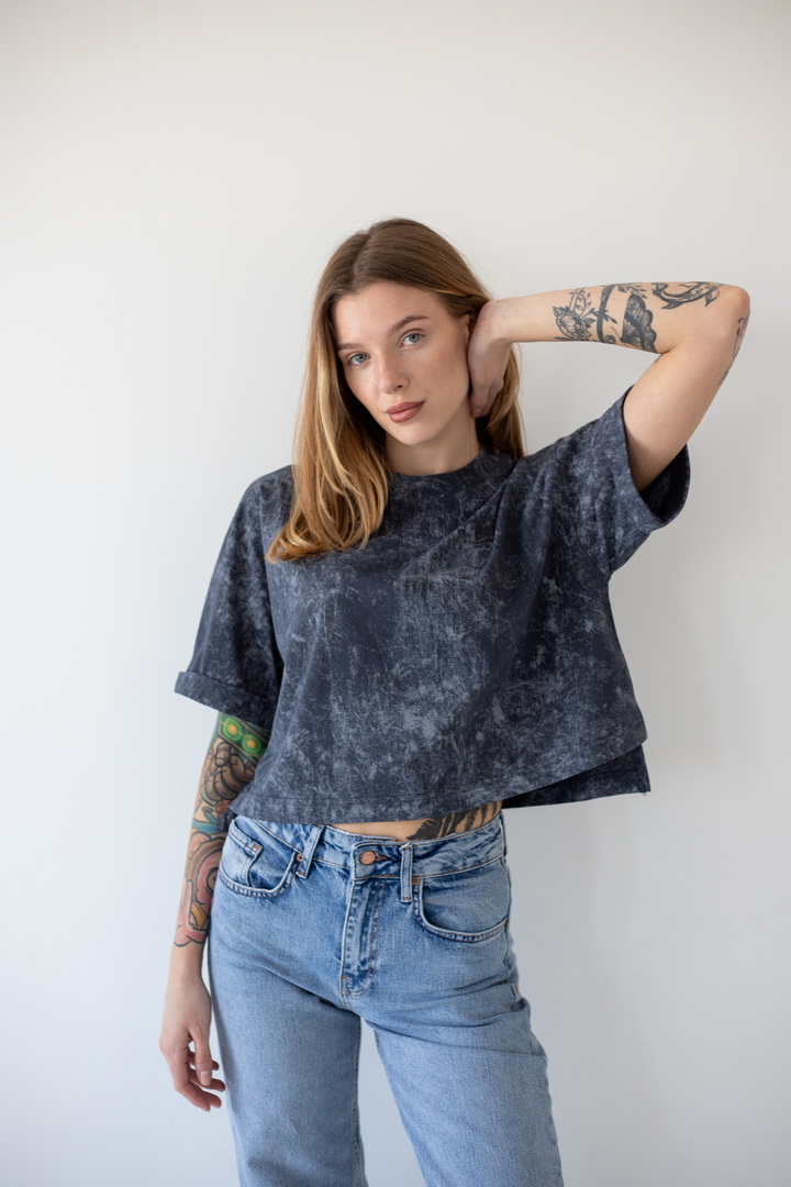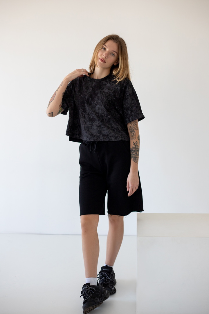Крутезна футболка - основа для вдалого образу. Укорочена футболка для жінок, виготовлена з приємного на дотик полотна "Кулір", в стилі "Oversize". Модель з округлим вирізом та коротким рукавом. Футболка чудово комбінується з джинсами, шортами, спідницями.
