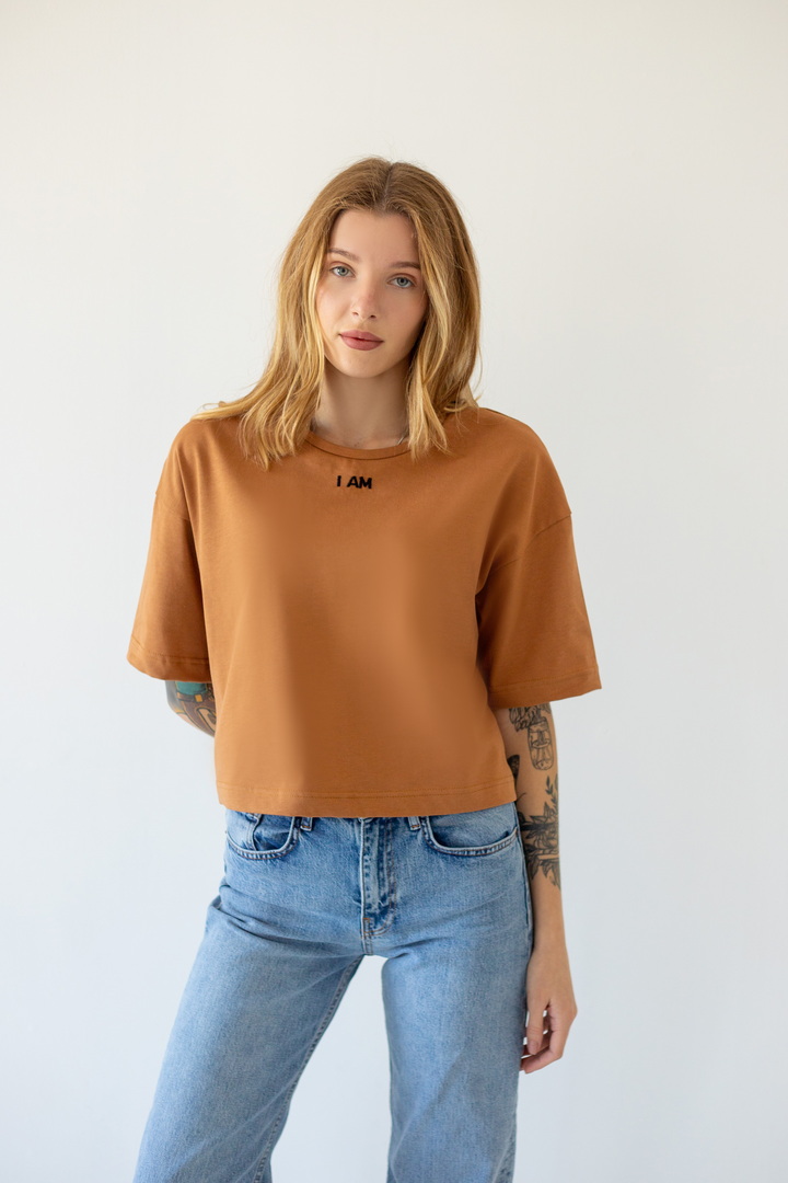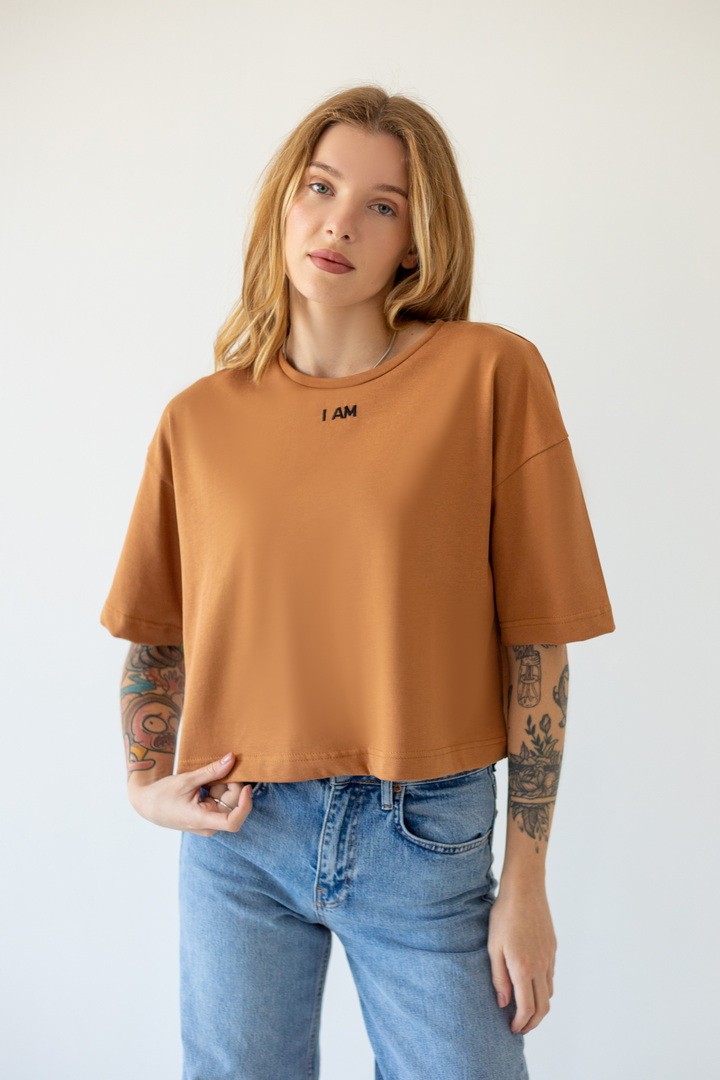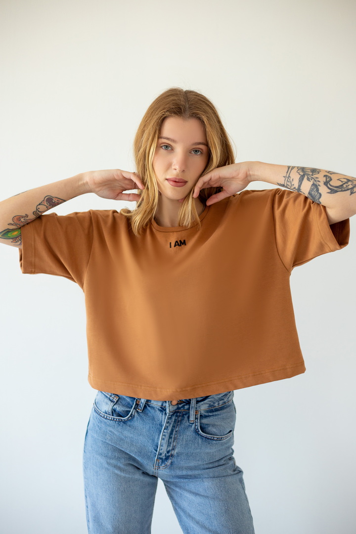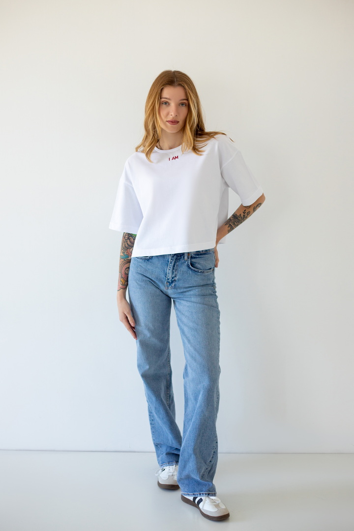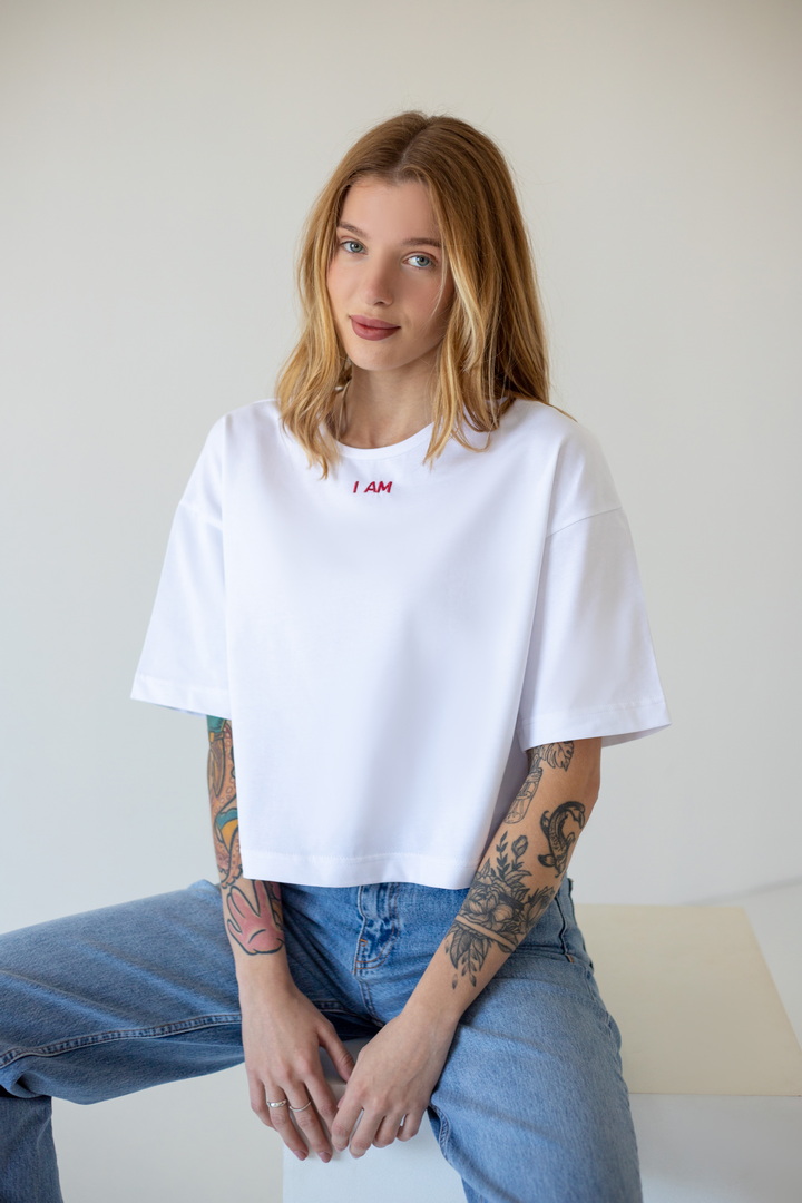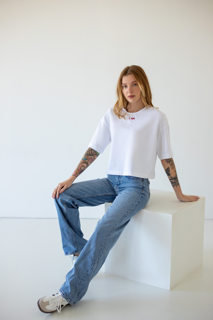 Стильна укорочена футболка oversize для жінок із куліру(преміум). Модель з короткими рукавами та округлим вирізом, по переду розташована вишивка. Футболка відмінно комбінується з джинсами, шортами, легінсами. Полотно хорошої якості, не линяє, натуральне за складом.