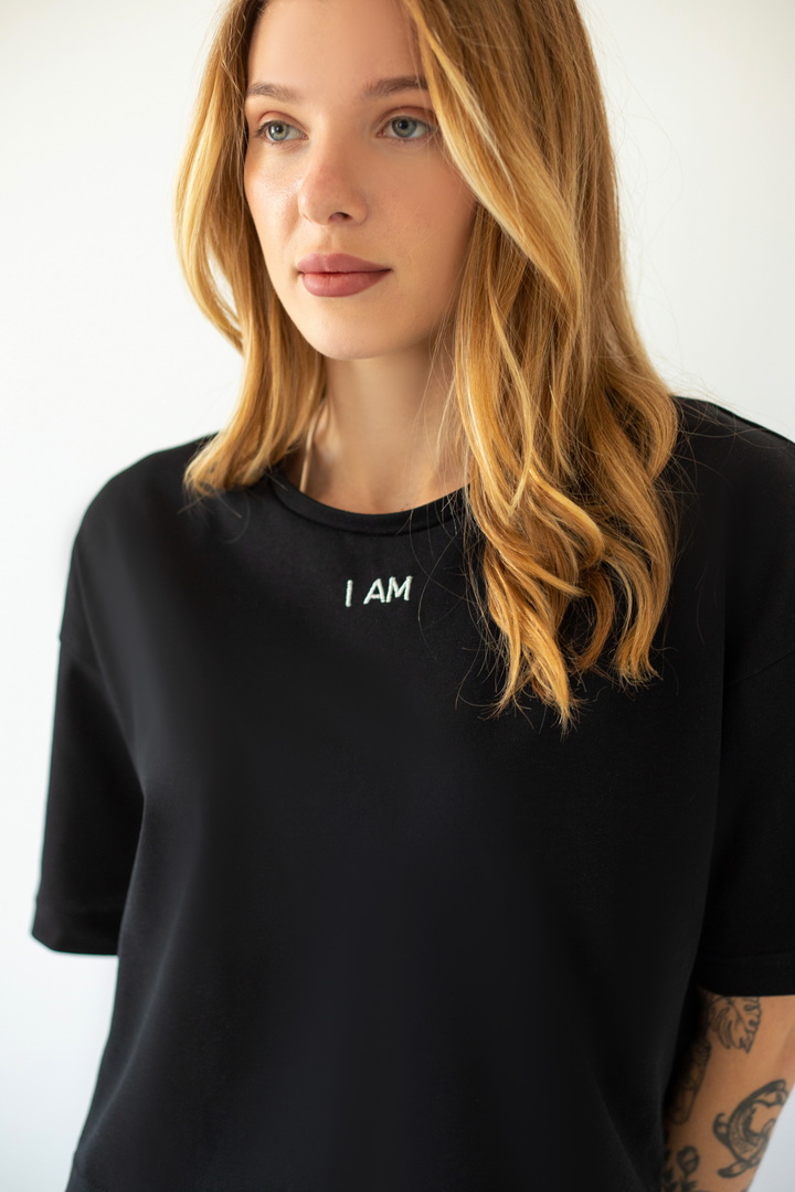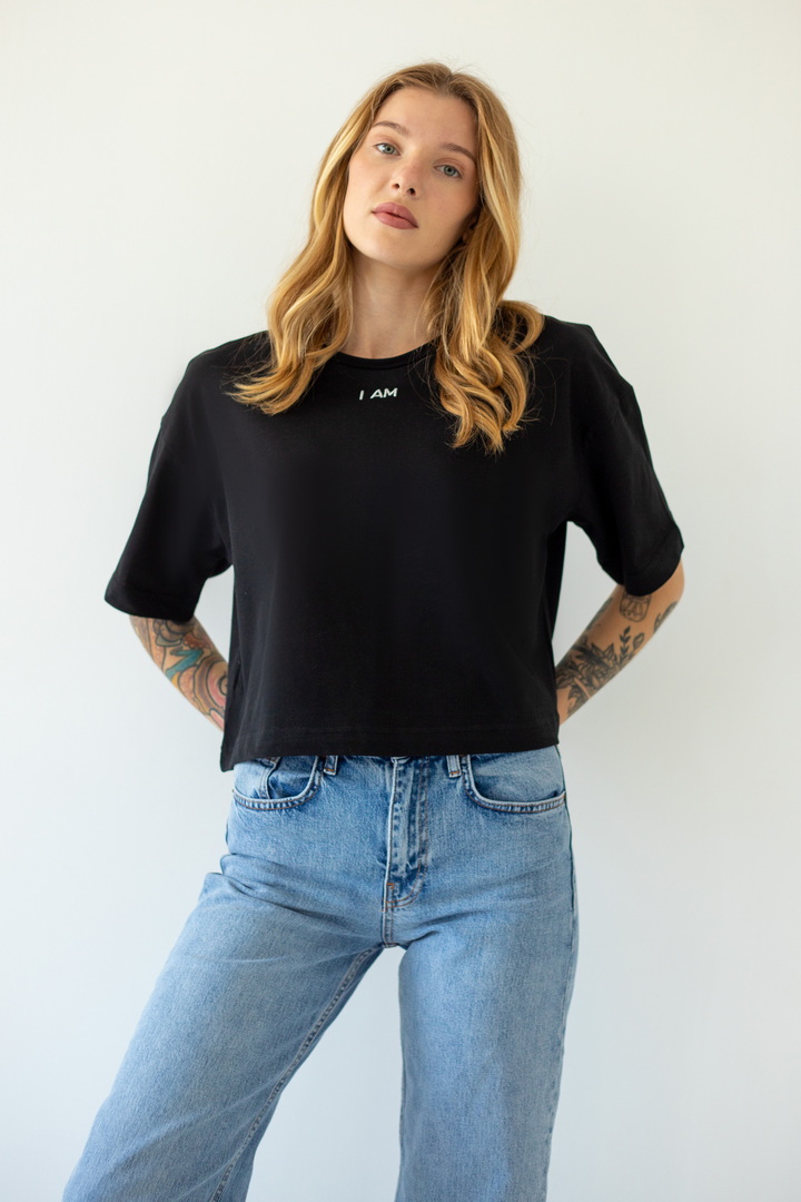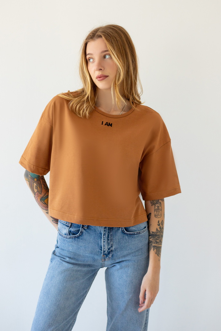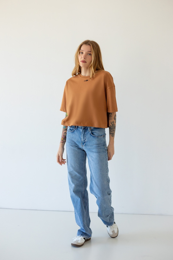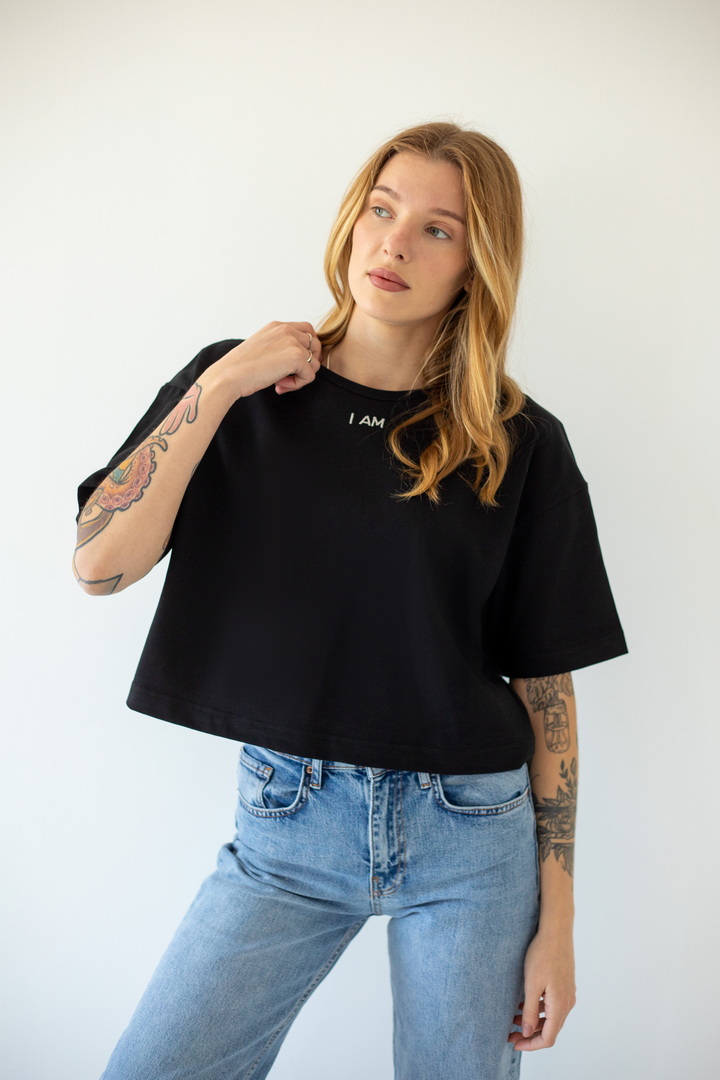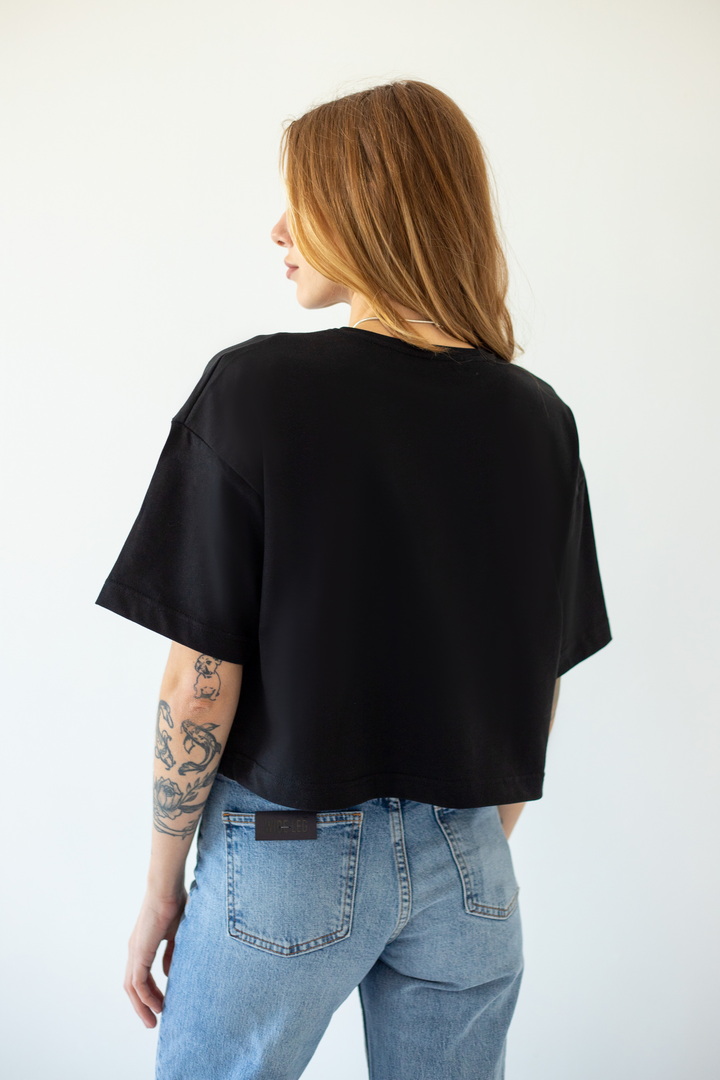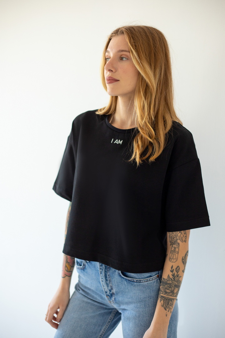 Стильна укорочена футболка oversize для жінок із куліру(преміум). Модель з короткими рукавами та округлим вирізом, по переду розташована вишивка. Футболка відмінно комбінується з джинсами, шортами, легінсами. Полотно хорошої якості, не линяє, натуральне за складом.