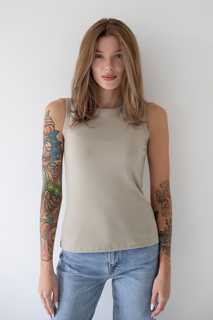 Зручний варіант для комфортного щоденного носіння. Оригінальний дизайн дає можливість носити топ із найрізноманітнішими елементами жіночого одягу. Топ - незамінна річ літнього гардеробу. Топ для жінок напівприталеного крою красиво виділяє талію та жіночий силует. Виріб виготовлений із полотна "Рубчик". Матеріал приємно прилягає до тіла, не викликає подразнень та алергії. М'яка текстура тканини дозволяє дихати шкірі, не порушує природну циркуляцію повітря. Матеріал еластичний, не деформується, зберігає форму, навіть після численних прань.