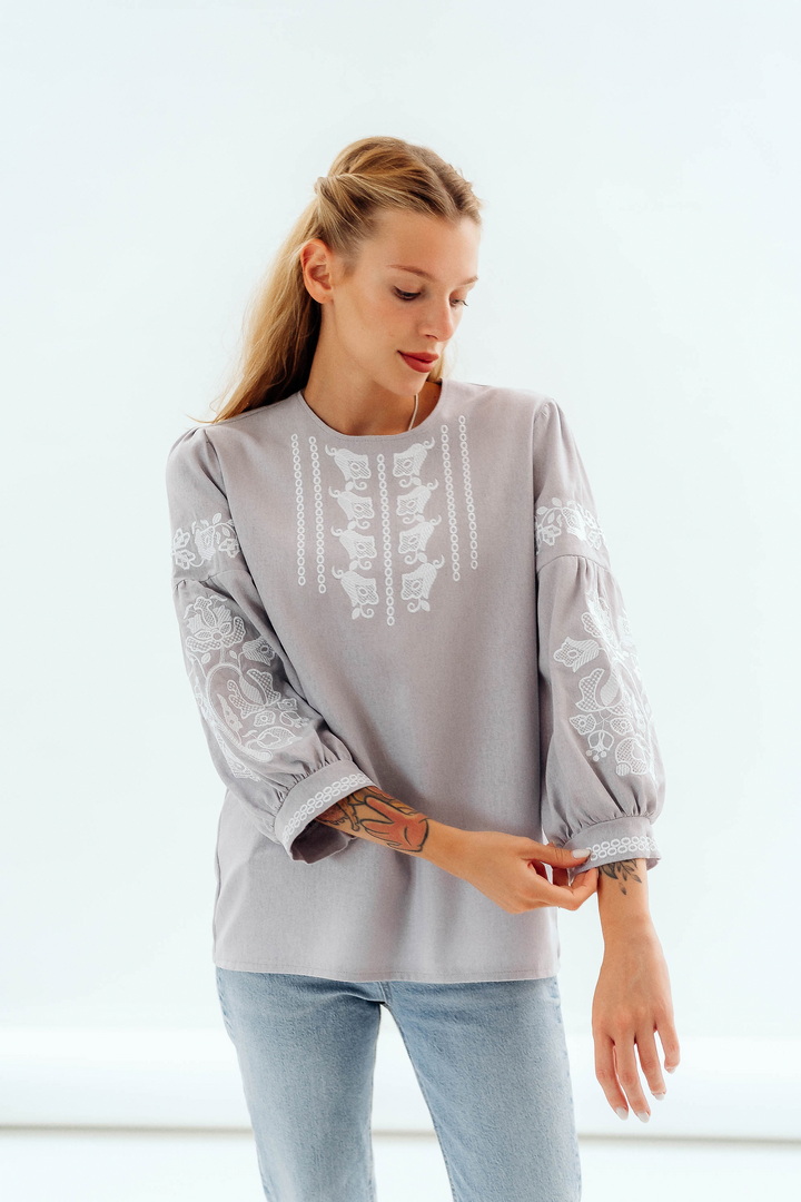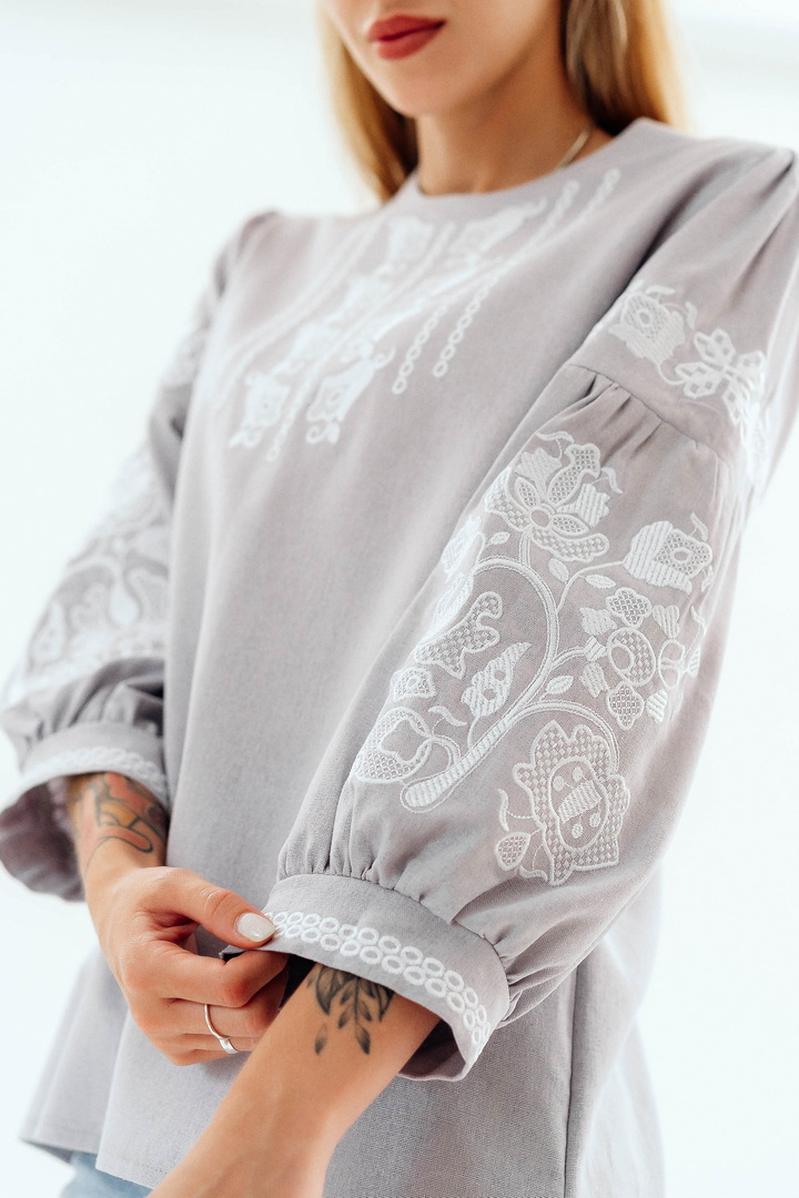 Склад: 55% льон, 45% віскоза. Вишита орнамент: машинна вишивка.