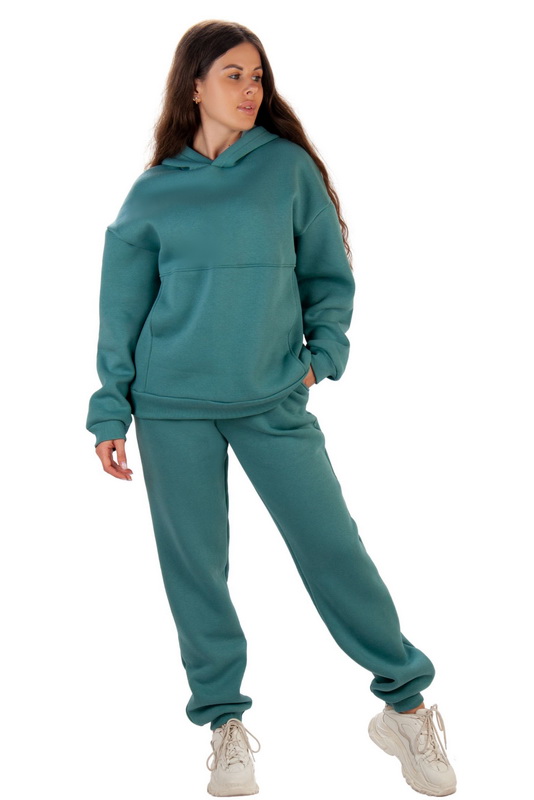 Теплий та комфортний костюм для жінок, виготовлений із полотна "Тринитка з начосом". Модель стильна та практична, складається зі штанів та худі, штани мають по низу широкі еластичні манжети, худі вільного крою. Комплект виконаний в різноманітній палітрі кольорів, на будь-який смак, чудово підійде для використання в холодну пору року. Тканина щільна, має густий начіс з виворотної сторони, чудово зберігає тепло.