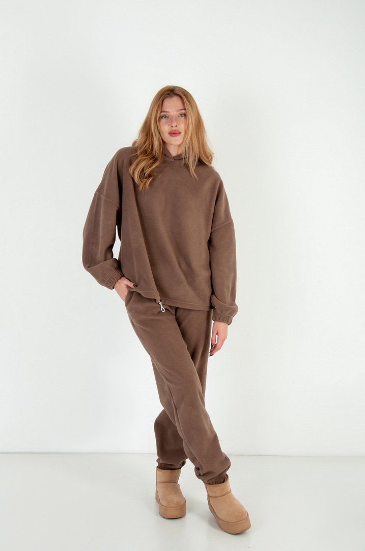 Флісовий жіночий костюм – теплий та комфортний варіант для прохолодної пори року. М'який фліс приємний до тіла, добре утримує тепло і не викликає подразнення. Костюм складається з кофти (без кишень) та штанів, має зручний фасон, що не обмежує рухи. Ідеально підходить для дому, прогулянок чи відпочинку на природі. Практичний, стильний та затишний – цей костюм стане улюбленим елементом вашого гардеробу.