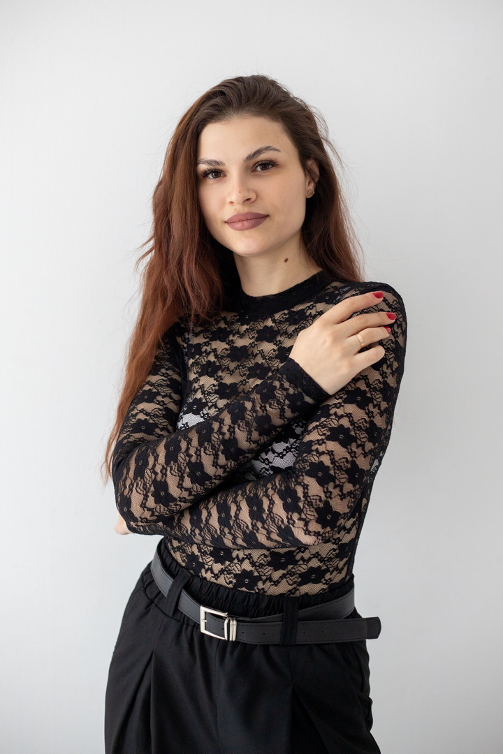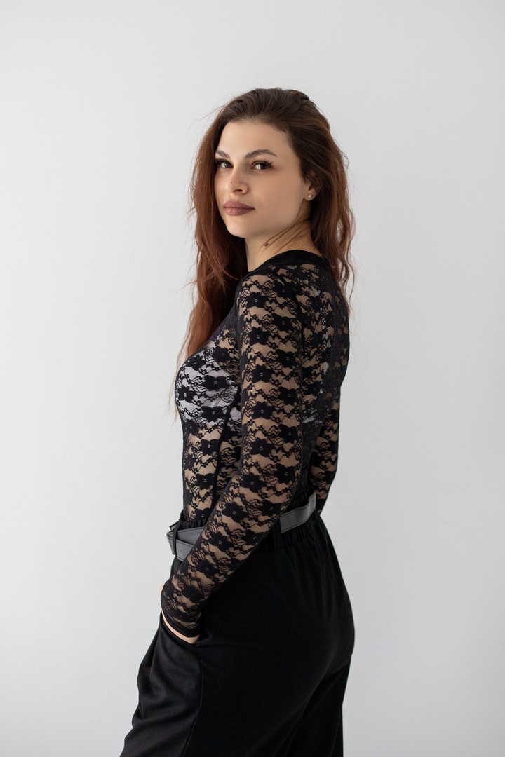 Параметри моделі: обхват грудей 83, талія 71, стегна 100, зріст 170 см.Розмір одягу 42-44.