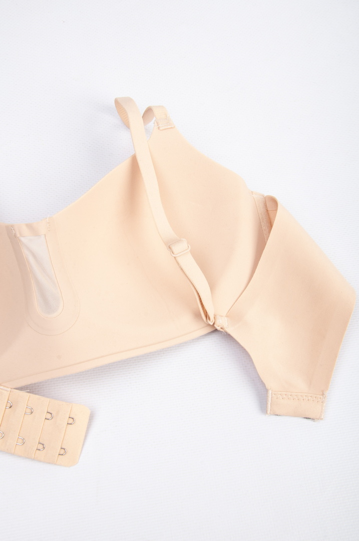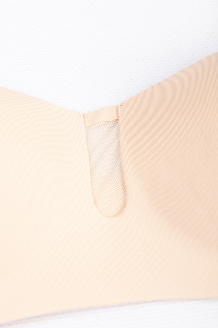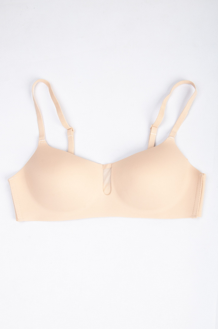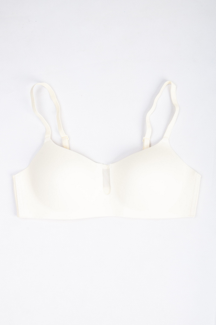 Бюстгальтер безшовні з м'якими чашками з тонкого поролону. Виконаний без кісточок, що робить його максимально комфортним для щоденного носіння. Бретели незнімні, з регулюванням по довжині забезпечують зручну посадку і хорошу підтримку. На спинці - класична застібка 2 гачки/4 рівня подовження.