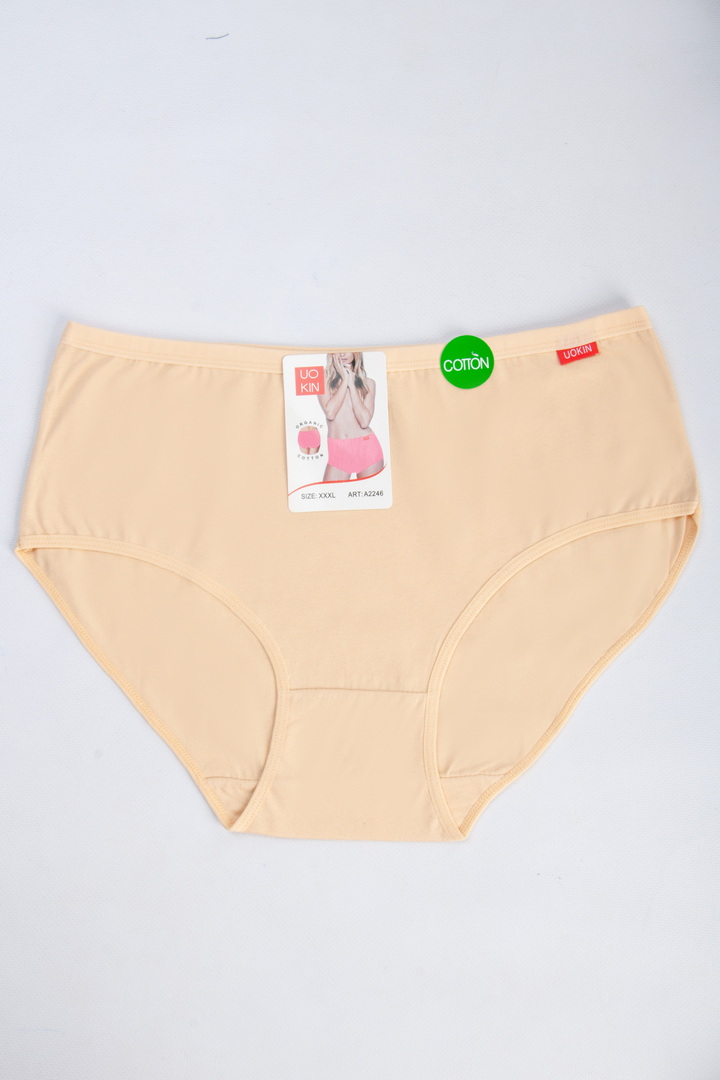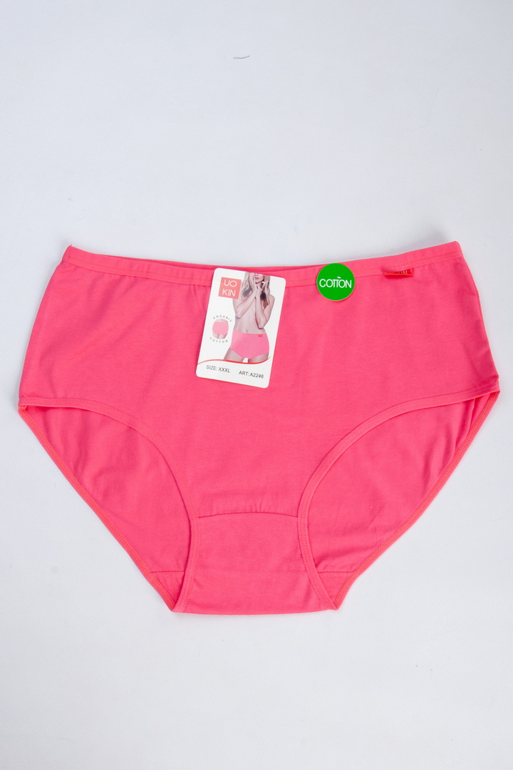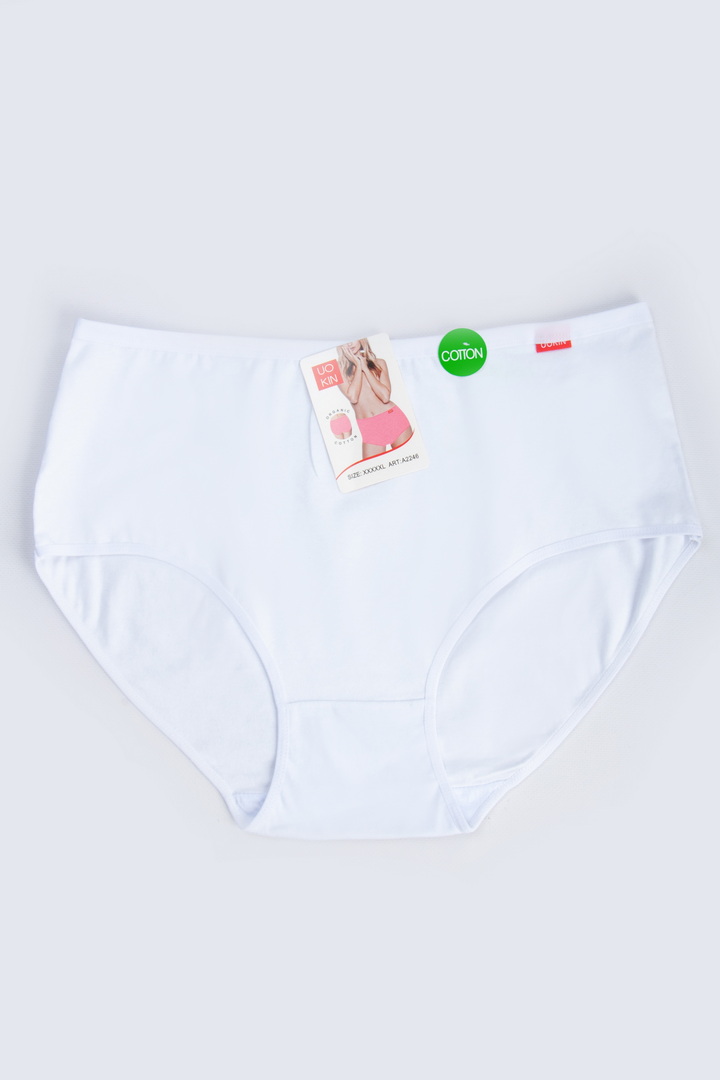 Однотонні труси великих розмірів (батал) з натуральної бавовни. М'який бавовняний матеріал забезпечує дихаючий ефект та приємне відчуття на шкірі, створюючи комфорт протягом усього дня. Висока посадка та широкі бічні панелі забезпечують відмінну підтримку та м'яко облягають фігуру, не створюючи дискомфорту. М'яка гумка на талії акуратно фіксує труси, не стискаючи і не залишаючи слідів. Ідеально підходить для повсякденного носіння. З ласточкою.