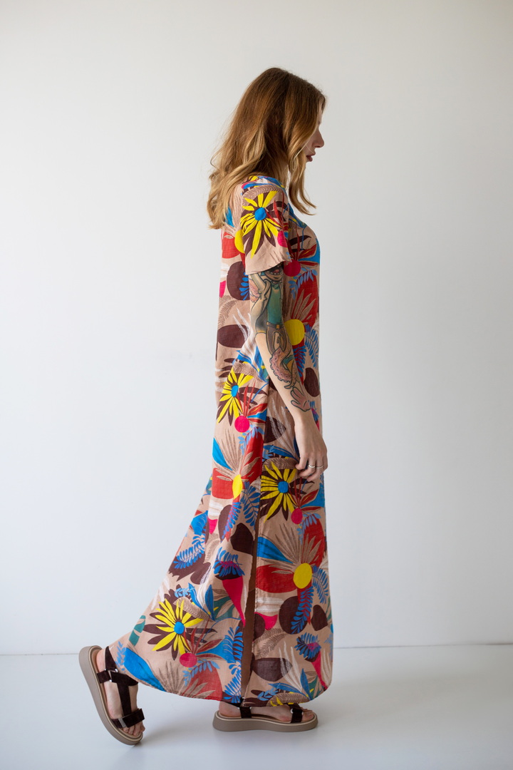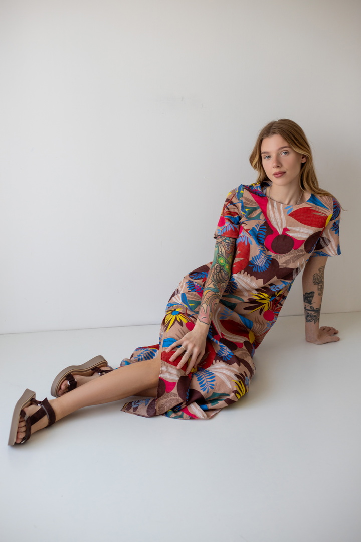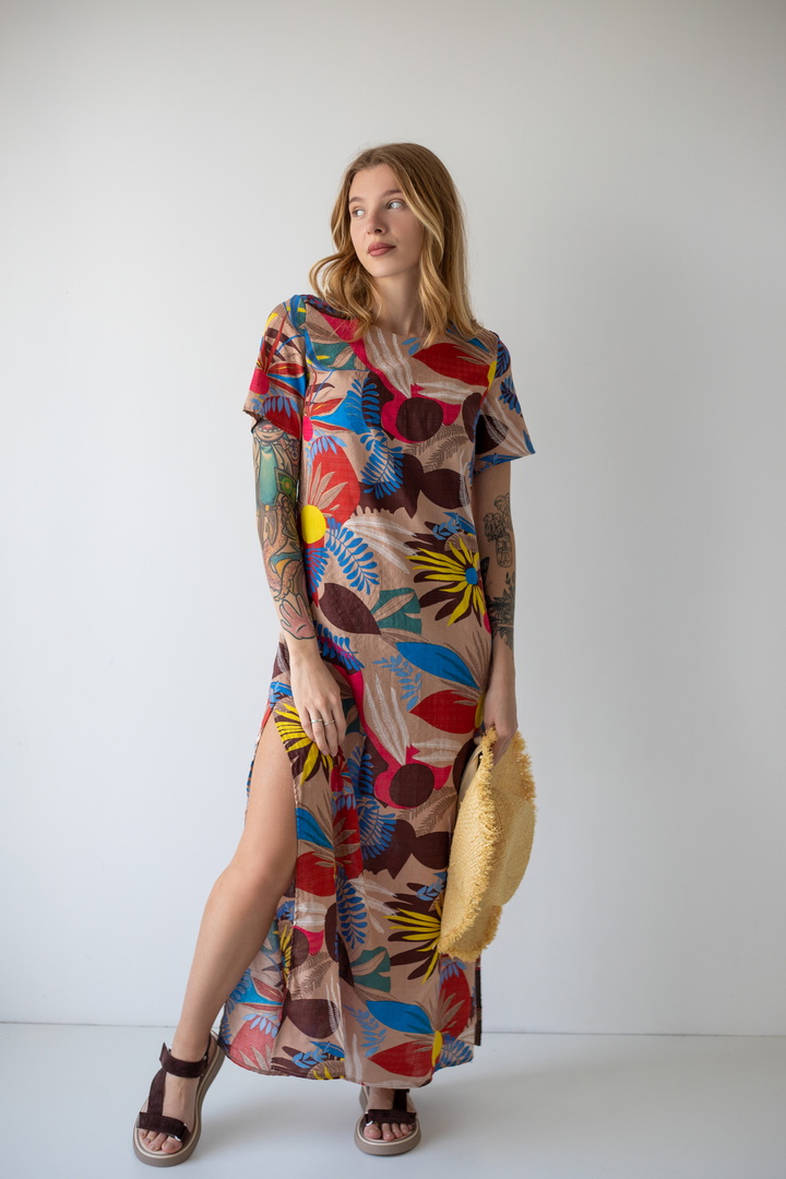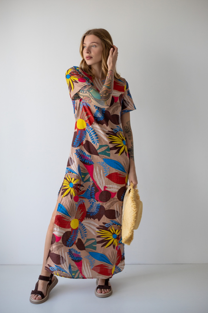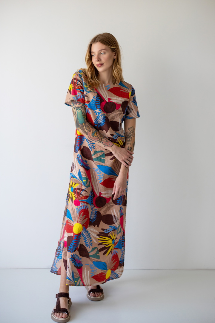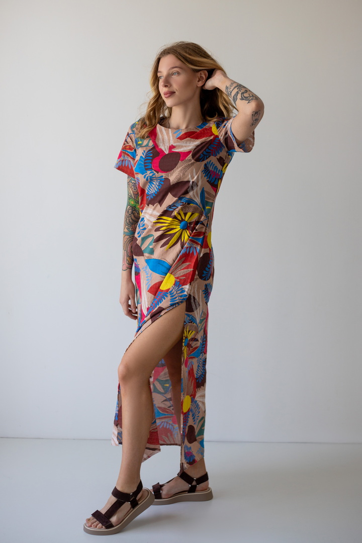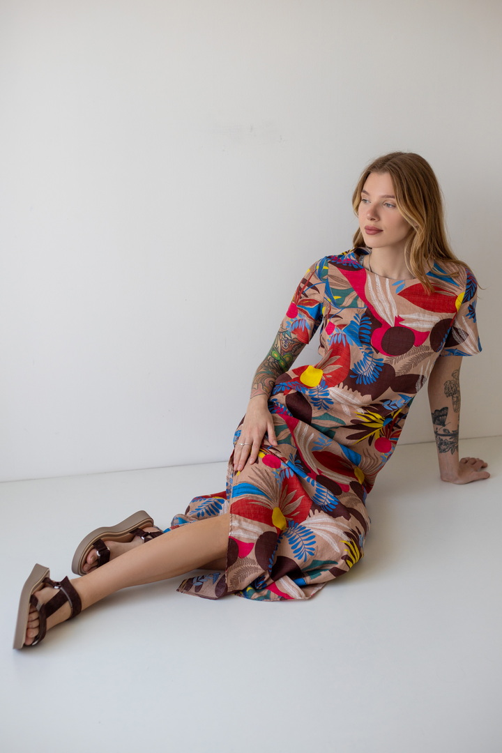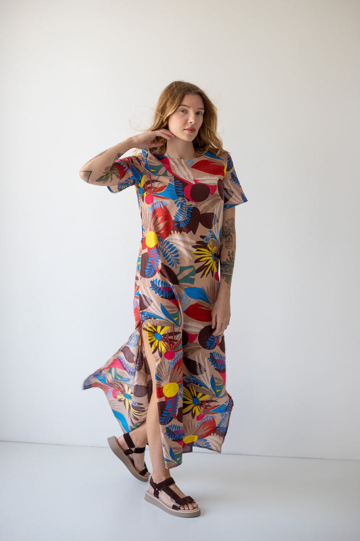 Модель сукні вишукана, гармонійна і неповторно красива - розроблена нашими дизайнерами спеціально для літа. Рукав короткий. Горловина круглої форми. Виконана з якісного полотна "Котон бабл". Одяг з цього полотна виходить дуже легким та ніжним - якраз те, чого так не вистачає в літню спеку. Полотно дає усадку.
