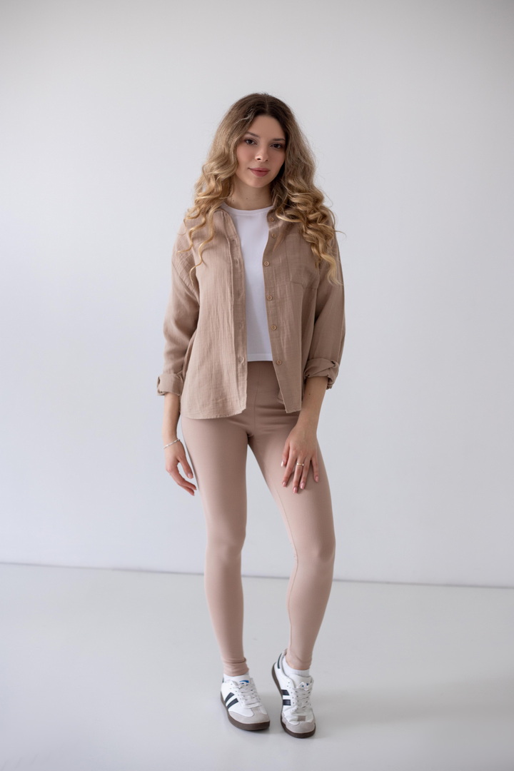 Ці лосини — ідеальне поєднання мінімалізму, жіночності та бездоганного комфорту. Виконані з якісного рубчастого трикотажу, вони делікатно облягають фігуру, підкреслюючи силует і створюючи витончений, акуратний образ. Завдяки еластичній тканині, лосини ідеально сідають і дарують відчуття легкості. Модель має високу посадку, яка не лише забезпечує комфорт, а й візуально подовжує ноги та підкреслює талію. Лаконічний дизайн робить ці лосини універсальними — вони легко поєднуються як із базовими футболками та світшотами, так і з більш стильними луками. Рубчик додає виробу фактурності та виглядає сучасно, що дозволяє створювати безліч образів — від повсякденних до більш елегантних. Це саме ті лосини, які хочеться носити щодня.