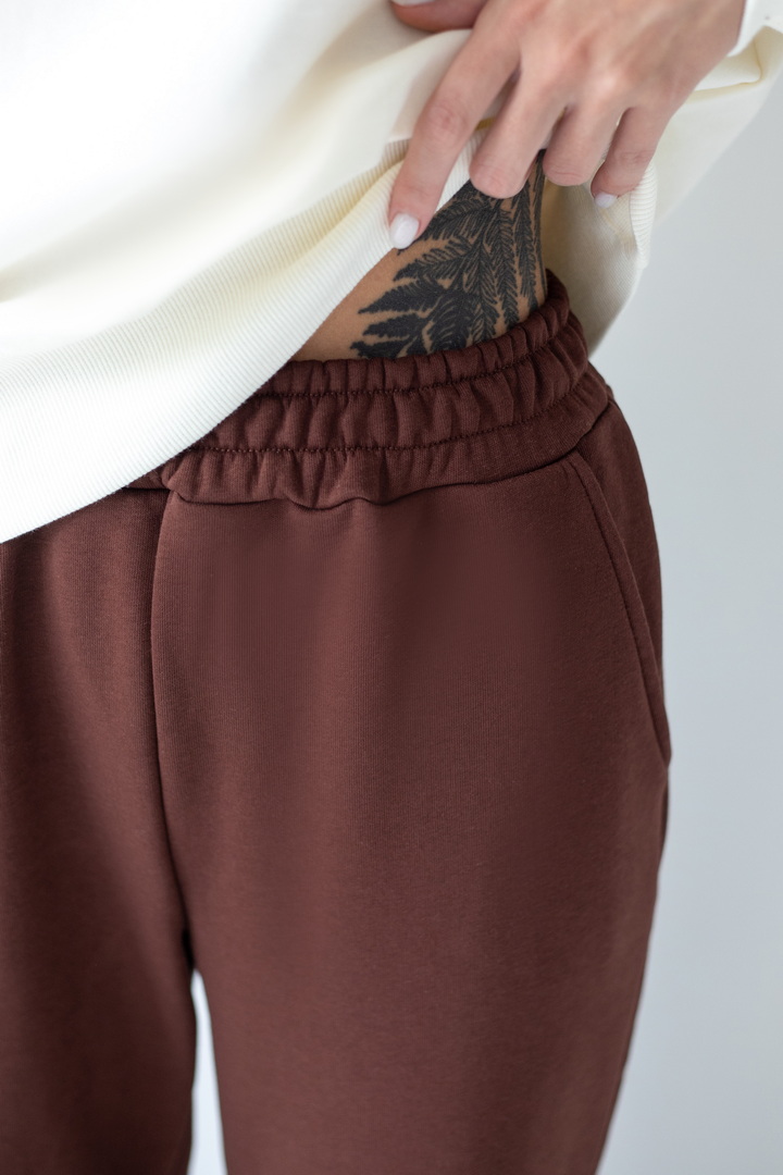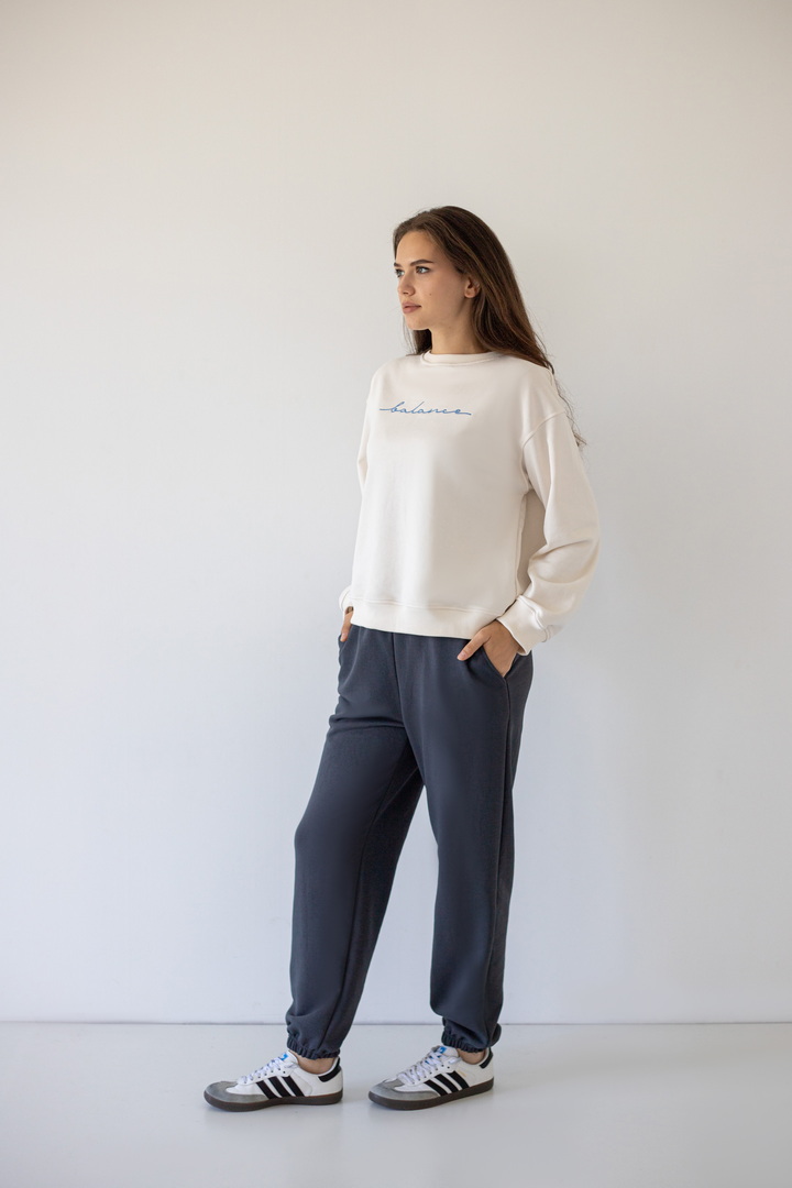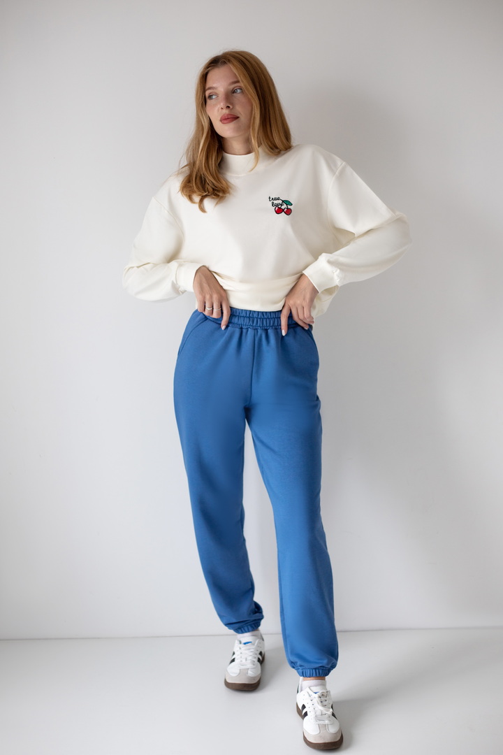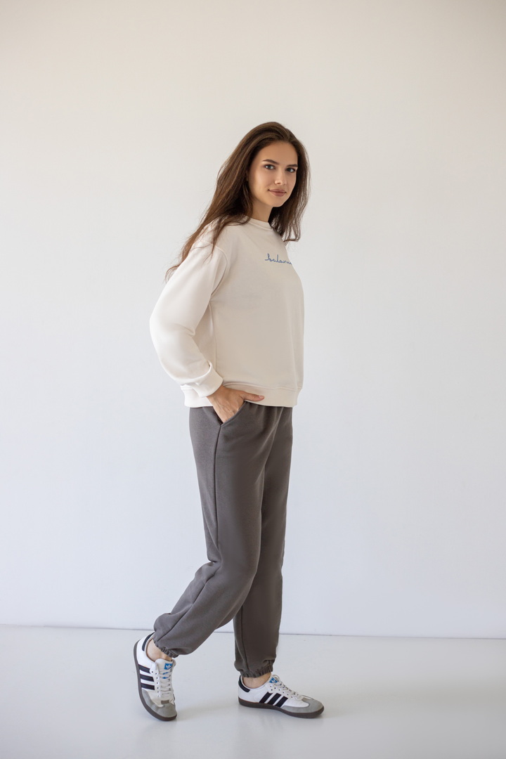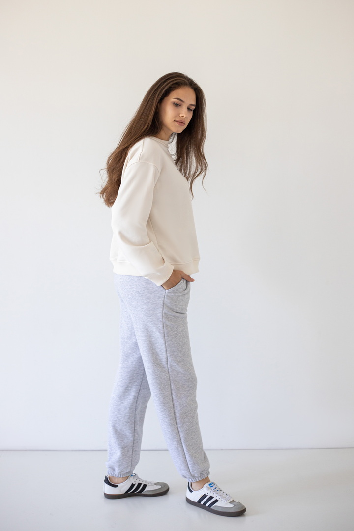 Стильні штани для жінок вільного крою із високоякісного триниткового футера "петля" (без утеплювача), підійдуть на сезон осінь/весна. Модель з високою посадкою, кишенями, на резинці по низу штанів. Полотно досить щільне, натуральне за складом, м'яке та приємне на дотик, не линяє, не скочується, зберігає форму після багаторазового прання. Доповнити стильний образ рекомендується вільною футболкою та модним спортивним взуттям.