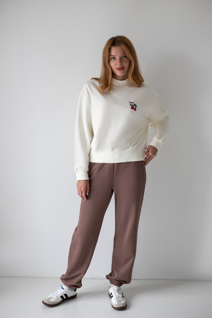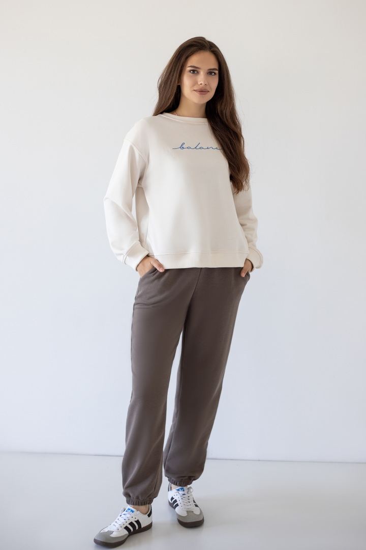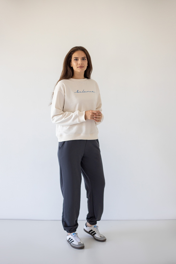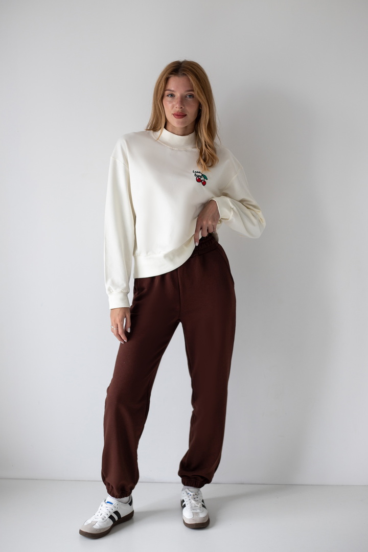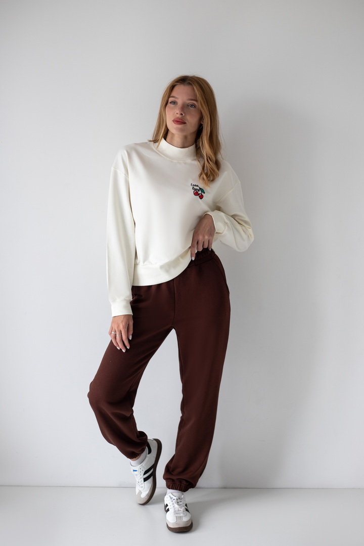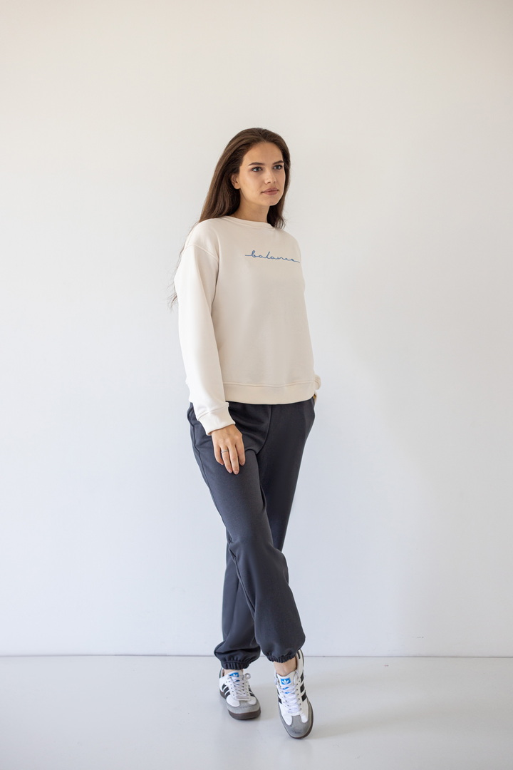 Стильні штани для жінок вільного крою із високоякісного триниткового футера "петля" (без утеплювача), підійдуть на сезон осінь/весна. Модель з високою посадкою, кишенями, на резинці по низу штанів. Полотно досить щільне, натуральне за складом, м'яке та приємне на дотик, не линяє, не скочується, зберігає форму після багаторазового прання. Доповнити стильний образ рекомендується вільною футболкою та модним спортивним взуттям.