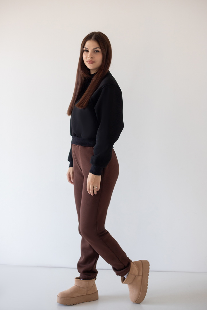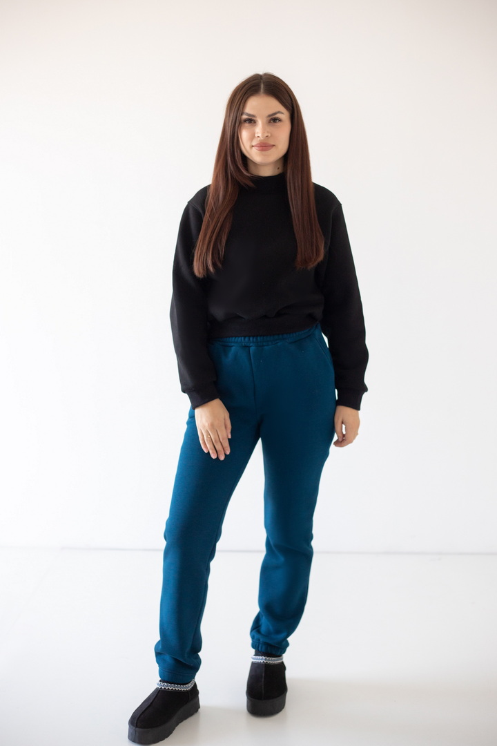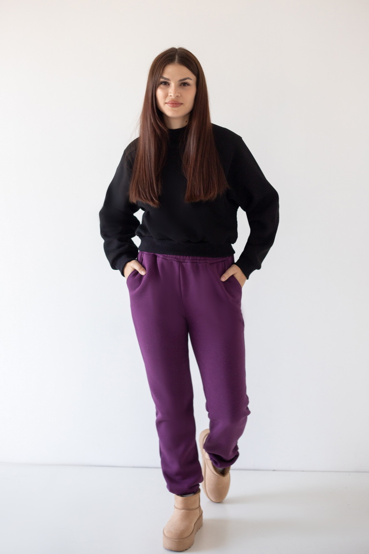 Дуже зручні жіночі штани для повсякденного використання. Модель з кишенями, на еластичній тасьмі по низу, з широким поясом та еластичною тасьмою, відстрочкою і шнурками. Штани виконані в двох актуальних кольорах. Полотно щільне, має гарні теплоізоляційні властивості, при правильному догляді може давати незначну усадку після прання. У них передбачено все: краса, зручність використання.