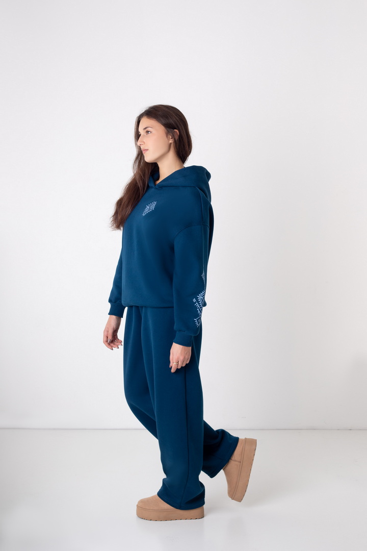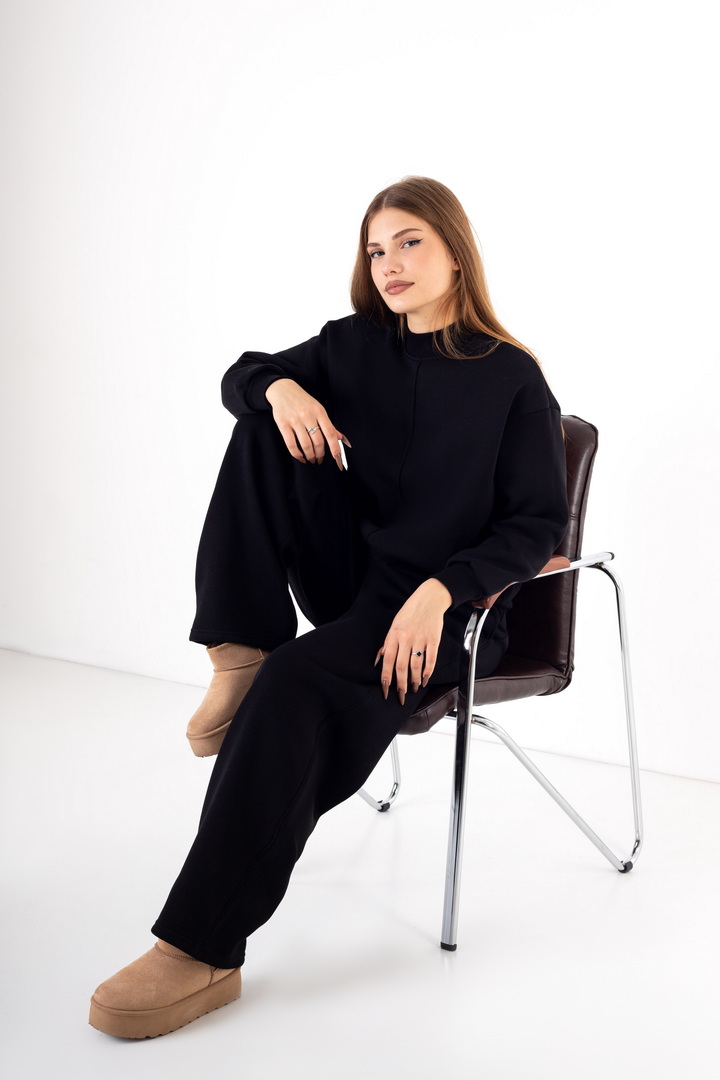 Жіночі штани баггі з триниткового футера з начосом – стильна та комфортна модель для сучасних образів. Вільний крій забезпечує свободу рухів та створює модний силует «оверсайз». Штани мають зручну посадку на талії, еластичний пояс та функціональні кишені. Штани виготовлені з якісної тканини, приємної до тіла, що добре тримає форму і не втрачає вигляд після прання. Ідеально поєднуються з худі, світшотами, кофтами – відмінний вибір для прогулянок, подорожей чи повсякденного стилю.
